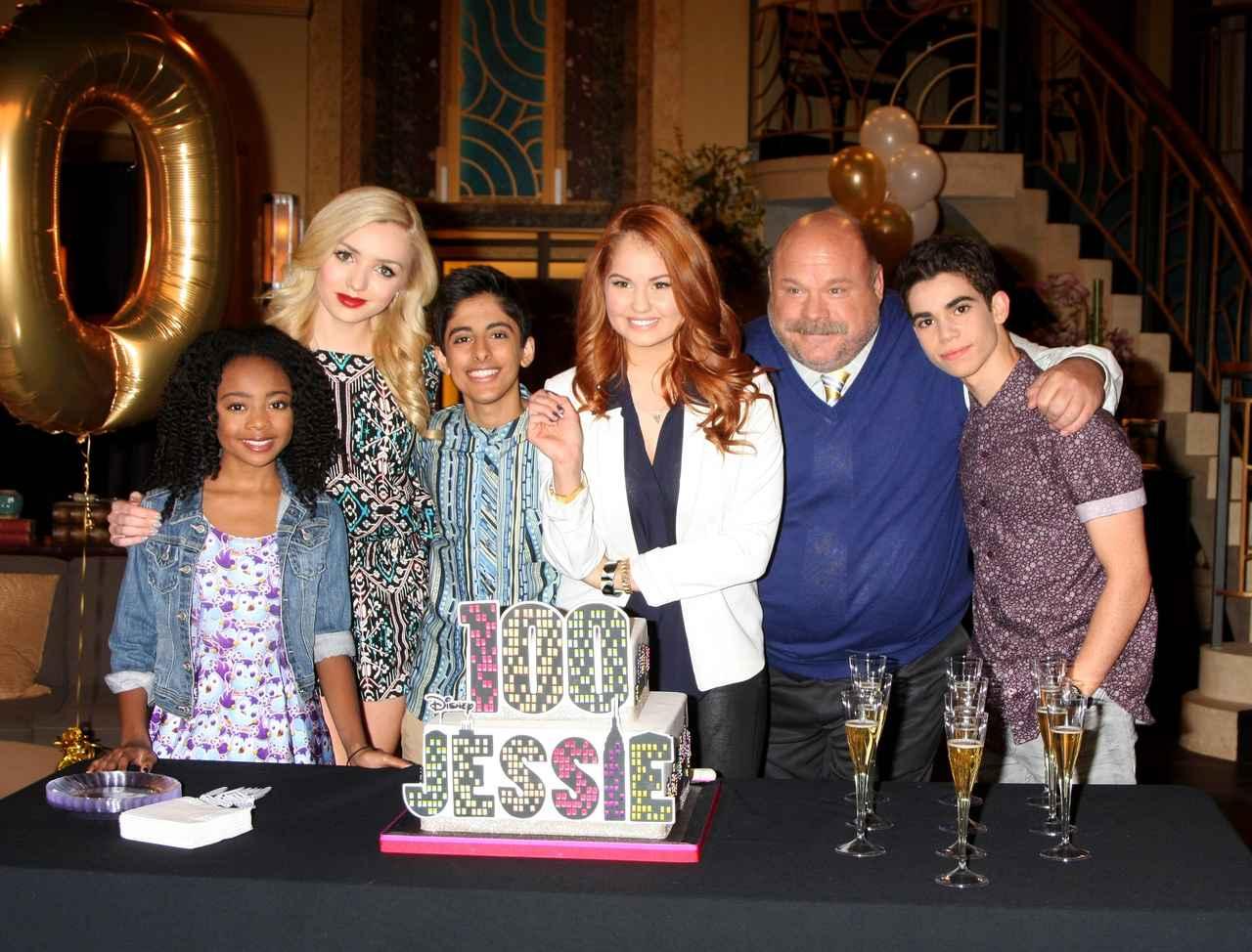 ドラマ『ジェシー!』が記念すべき100話目を迎えた時のメインキャストの集合写真。左から、スカイ・ジャクソン、ペイトン・リスト、カラン・ブラァ、デビー・ライアン、ケビン・チャンバーリン、キャメロン・ボイス。