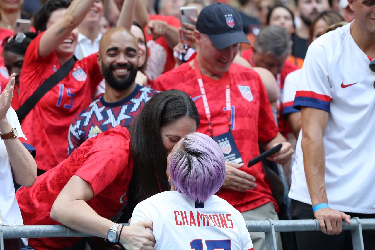サッカー女子ワールドカップで、MVPと得点王に輝いたアメリカ代表のミーガン・ラピノーと、パートナーであるスー・バードのキスシーンが注目された。(フロントロウ編集部)