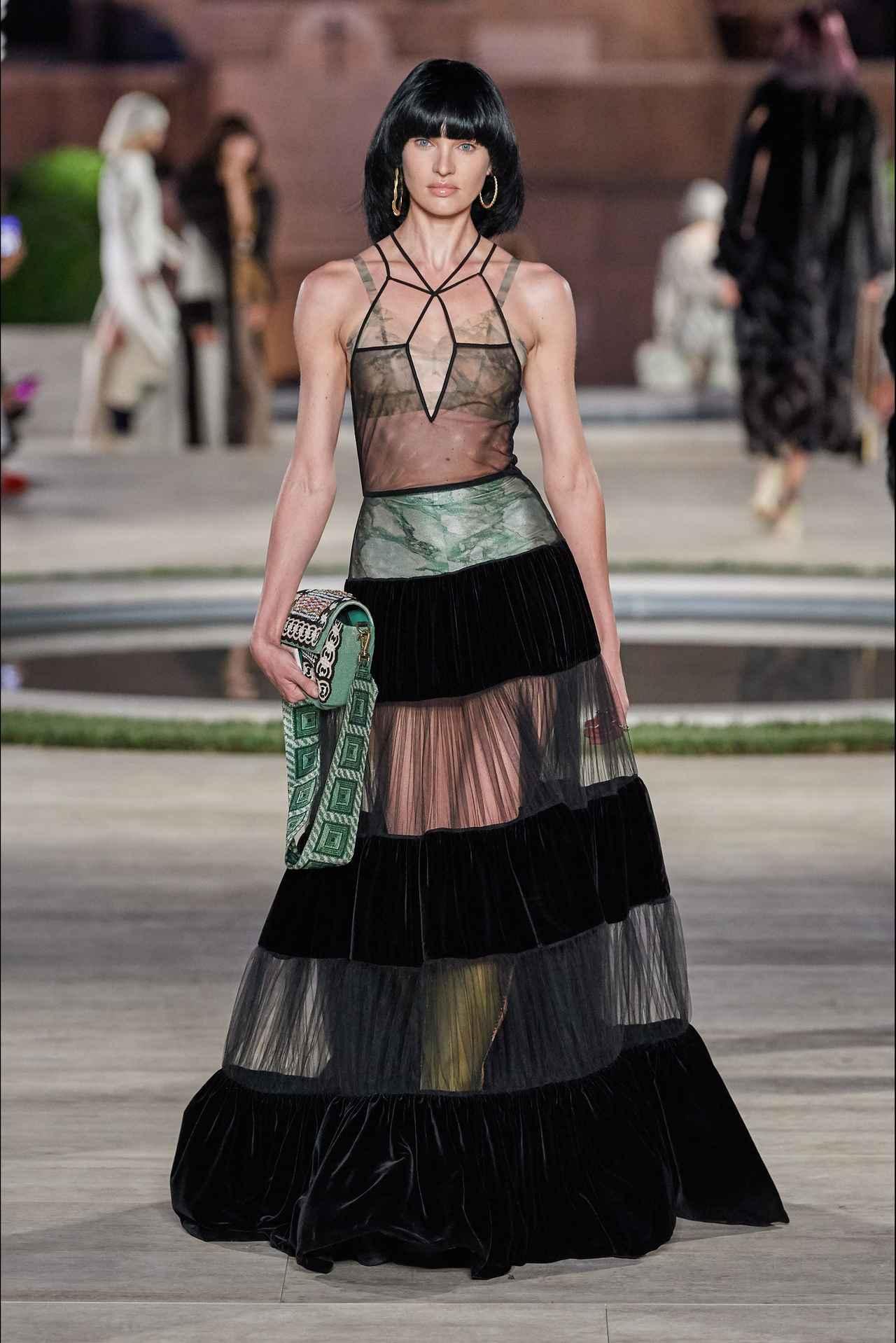 この日は、フェンディ(Fendi)のクチュールコレクションに参加していたキャンディス。ランウェイでは、黒髪ボブのウィッグを被ったキャンディスは、見ての通り、普段とは全く違う。また、メイクもかなり薄いスッピン風メイクなうえ、眉毛が前髪で完全に隠れてしまっているため、完全なる別人となっている。