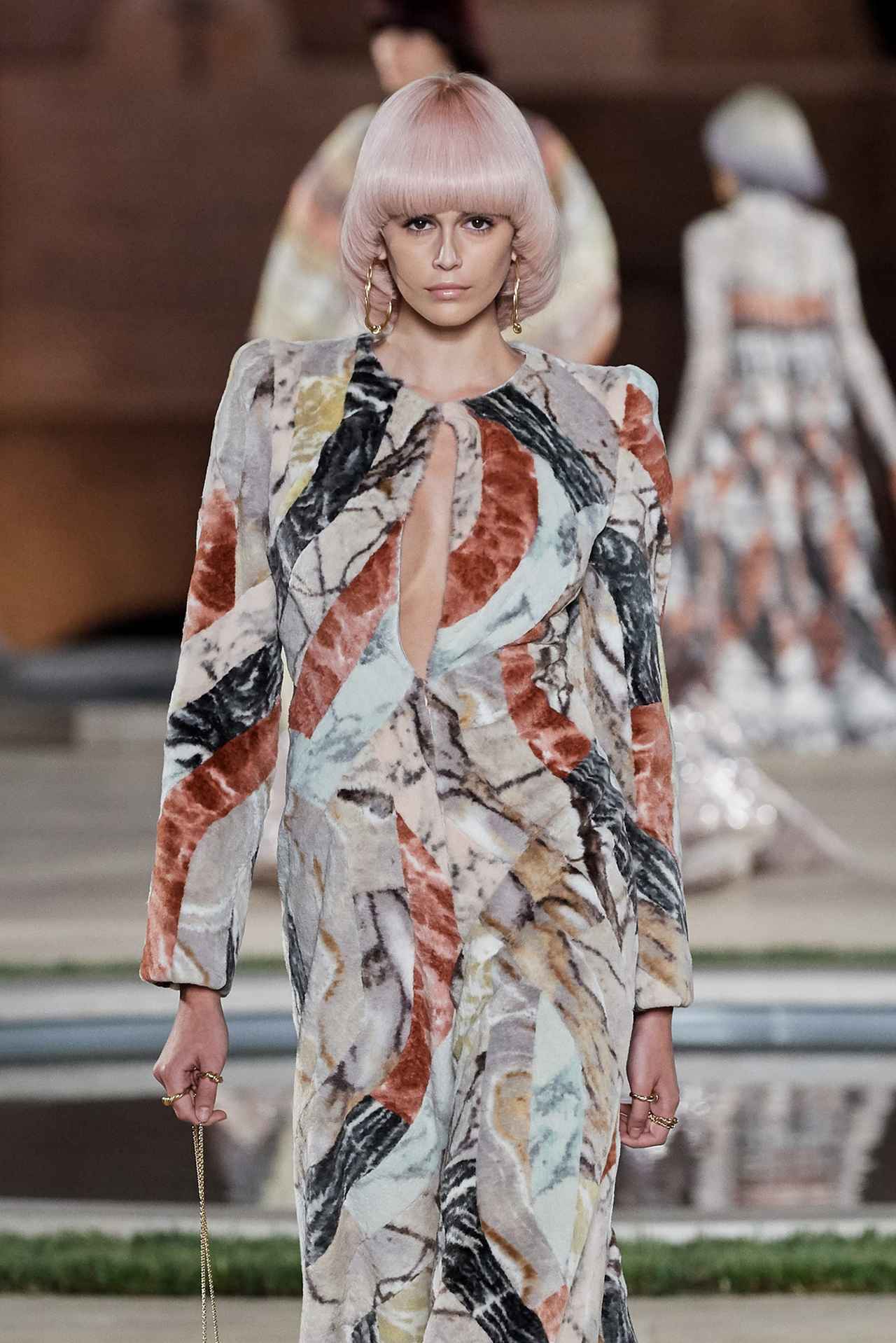 ちなみに今回のフェンディのコレクションでは、出演モデルが全員ボブのウィッグを被っていたため、ショーに参加した人気モデルのカイア・ガーバーもピンク色のボブのウィッグを被り、いつもと違う姿を見せた。