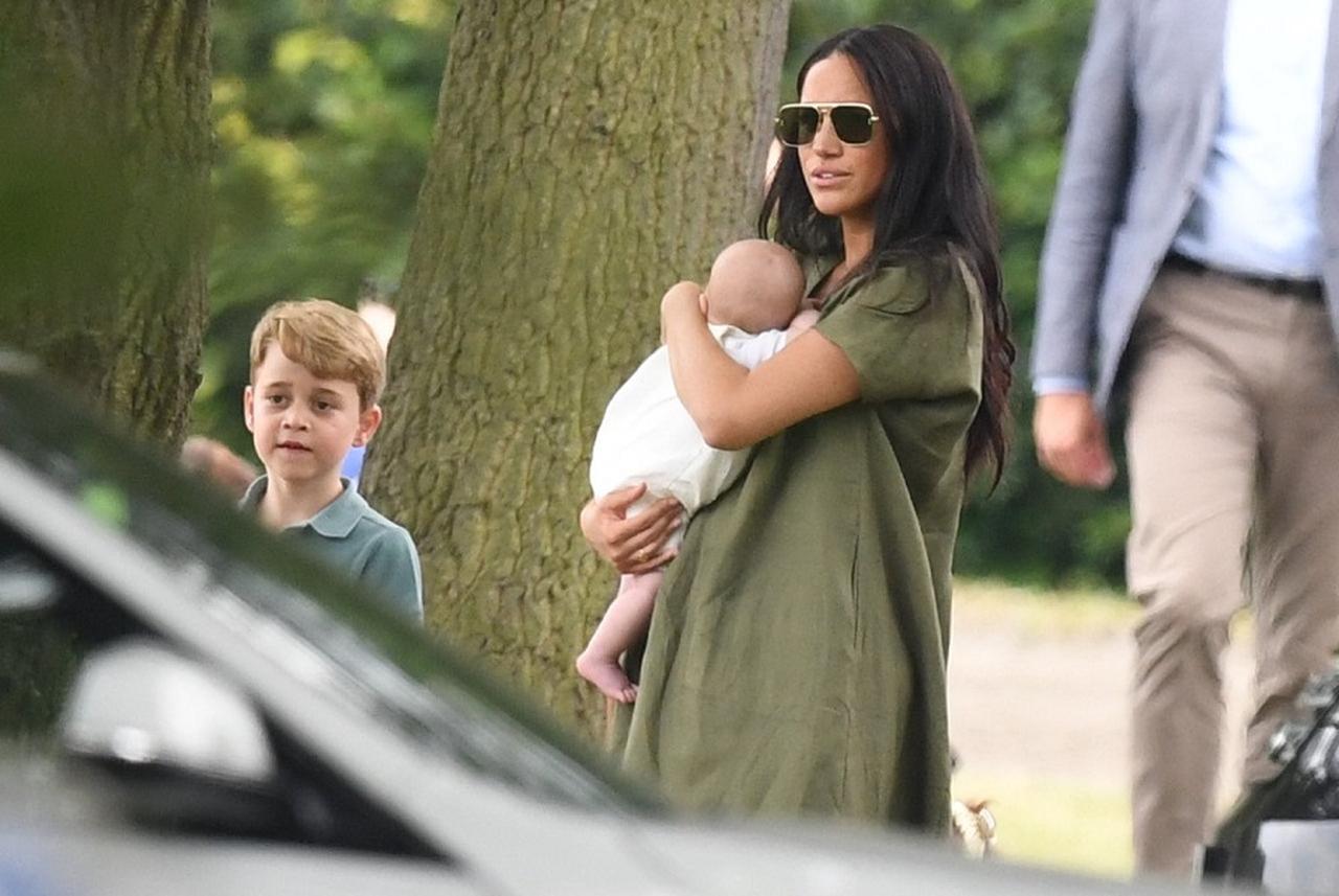 夫ヘンリー王子とその兄のウィリアム王子が出場したポロのチャリティ試合を兄嫁にあたるキャサリン妃や子供たち、そして5月に誕生した長男のアーチー(※)とともに観戦に訪れたメーガン妃。
