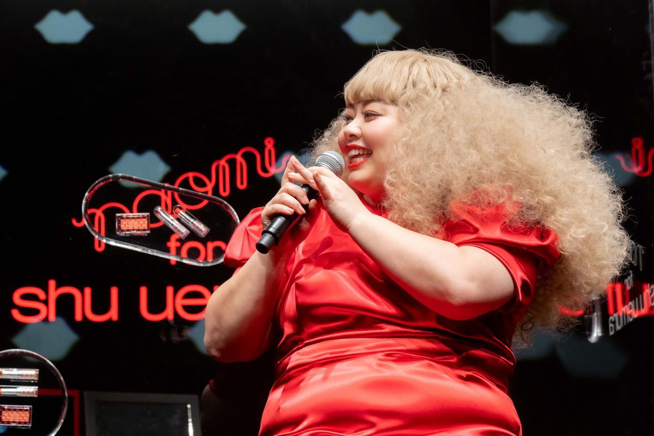 早くも話題を集めている、渡辺直美がプロデュースするシュウ ウエムラのコラボコレクション「naomi for shu uemura」が、7月20日よりついに発売。発売を記念したイベントに渡辺直美が登場し、制作の裏側やメイクのこだわりを明かした。(フロントロウ編集部)