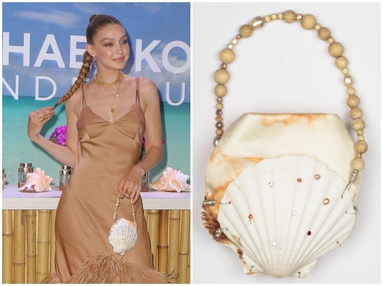 トップモデルのジジ・ハディッドが愛用する、貝殻のフォルムをしたシェルバッグがサマーコーデにぴったり!(フロントロウ編集部)