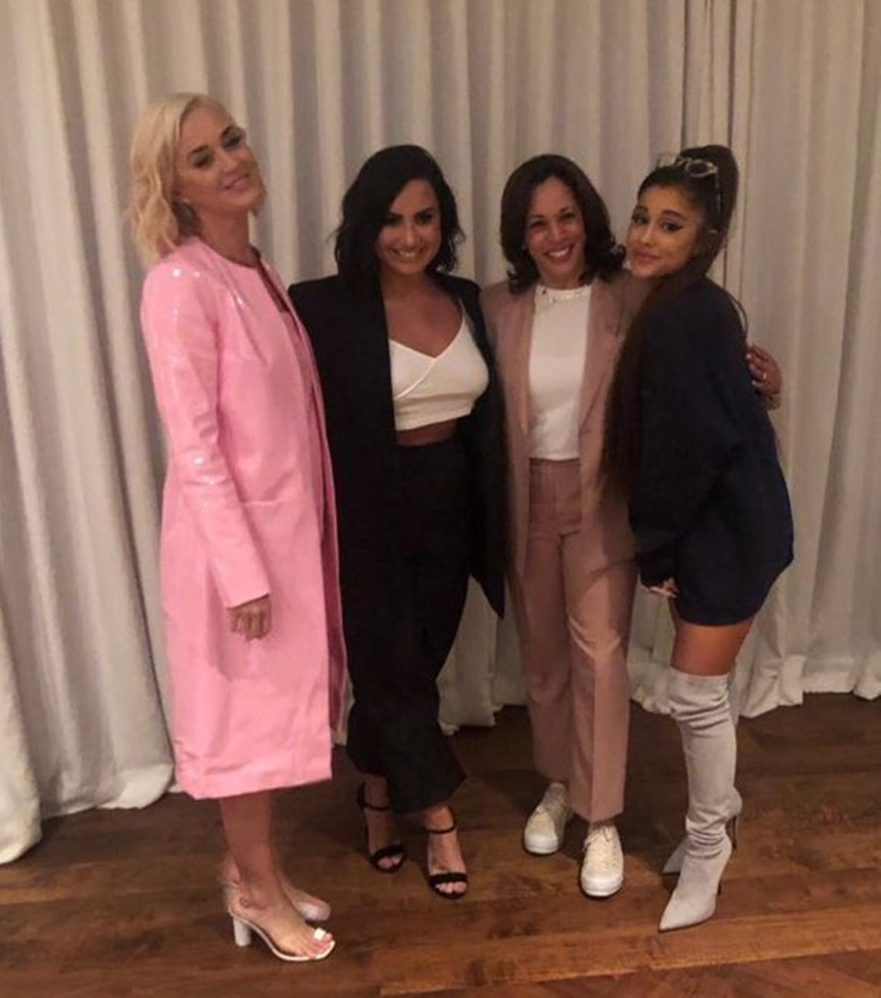 シンガーのアリアナ・グランデが、自身のマネージャーを務めるスクーター・ブラウンの自宅で開催されたカマラ・ハリス上院議員の講演会に出席。会場にはアリアナのほかにシンガーのケイティ・ペリーデミ・ロヴァ―トの姿もあり、ハリス氏を交えた4人で記念撮影を行なった。