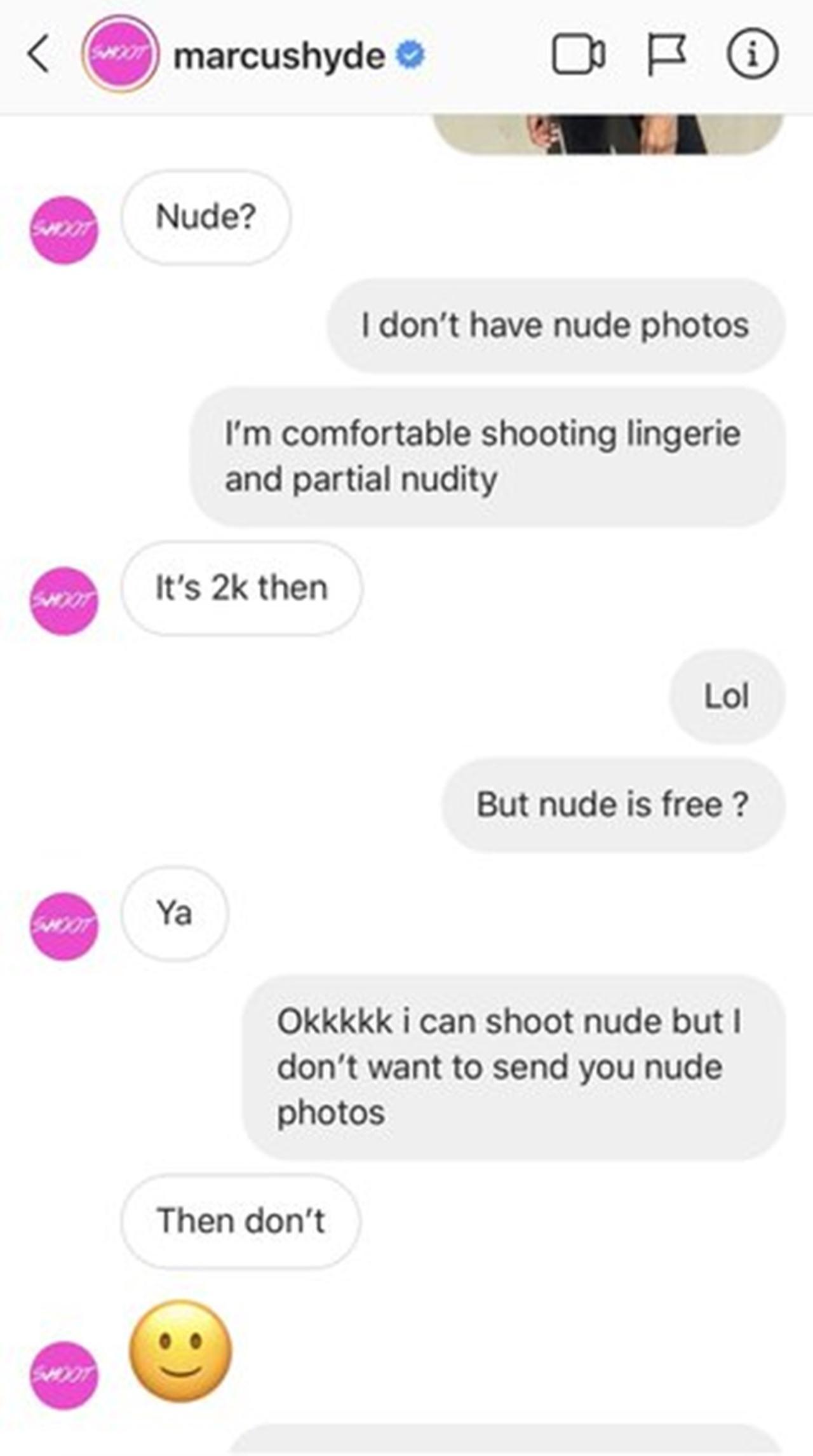 リアリティスターのキム・カーダシアンらセレブ御用達のフォトグラファーとして知られるマーカス・ハイド(Marcus Hyde)から、ヌード写真を送るよう要求されたことをモデルのサンナヤ・ナッシュ(Sunnaya Nash)が告発した件で、彼女がインスタグラムのストーリーにアップした「証拠画像」をインスタグラム側が強制的に削除していたことがわかった。