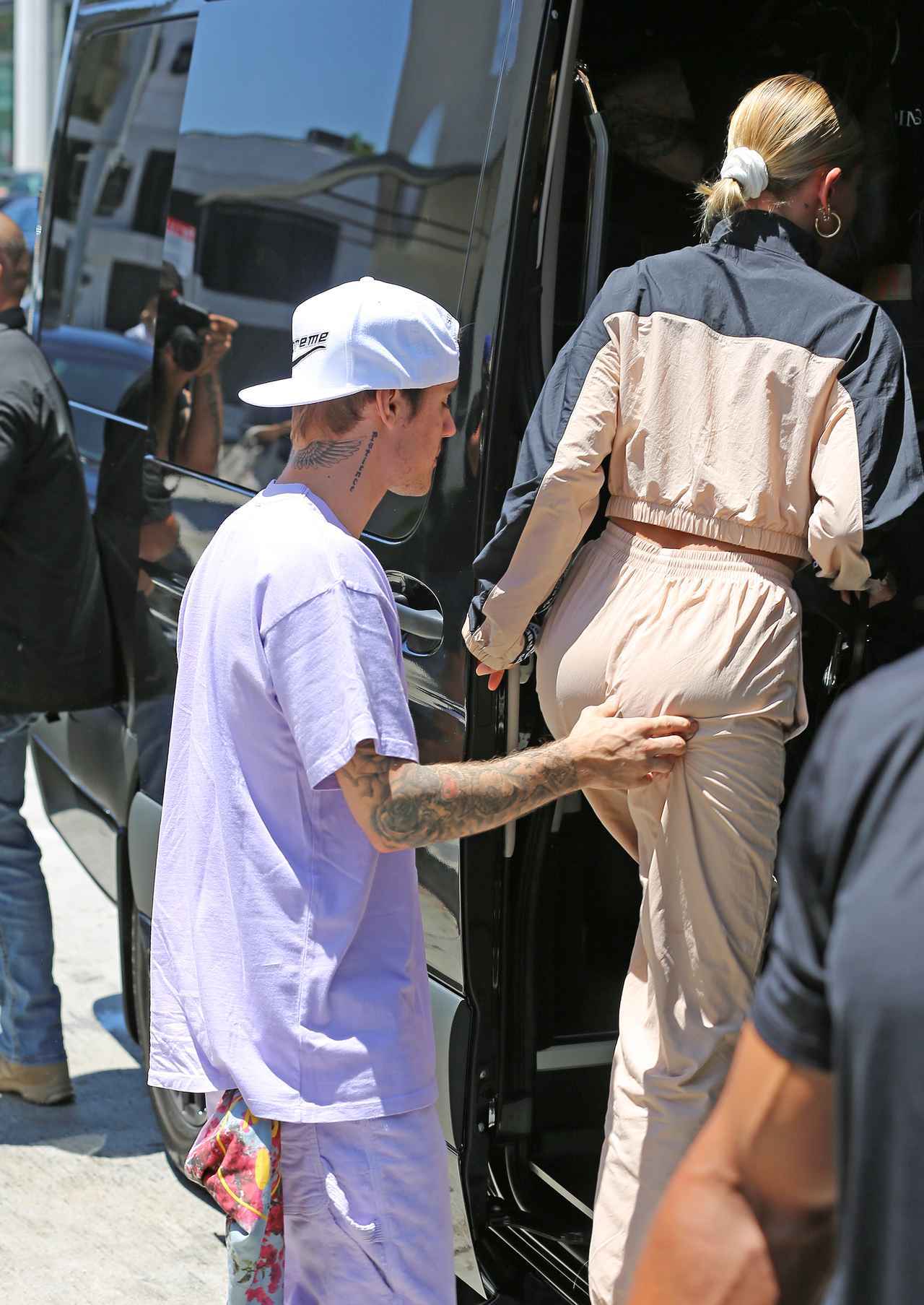 シンガーのジャスティン・ビーバーが、どさくさに紛れて妻でモデルのヘイリー・ビーバーの「美尻」をムギュッとわしづかみに。(フロントロウ編集部)