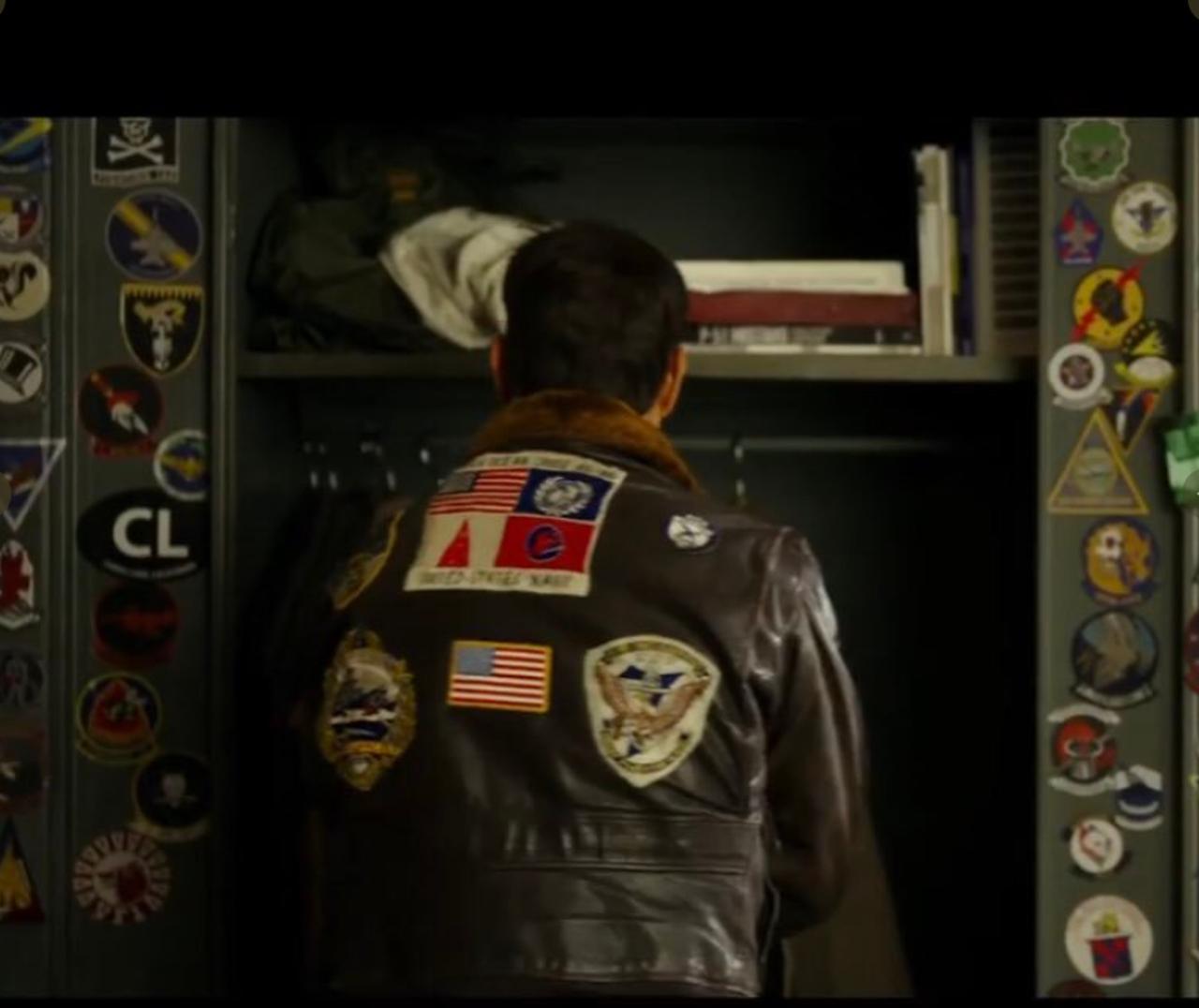 34年前にマーヴェリックが着用していたレザージャケットの背中上部には、日本の国旗と台湾が使用する青天白日満地紅旗が背中のワッペンがあった。
