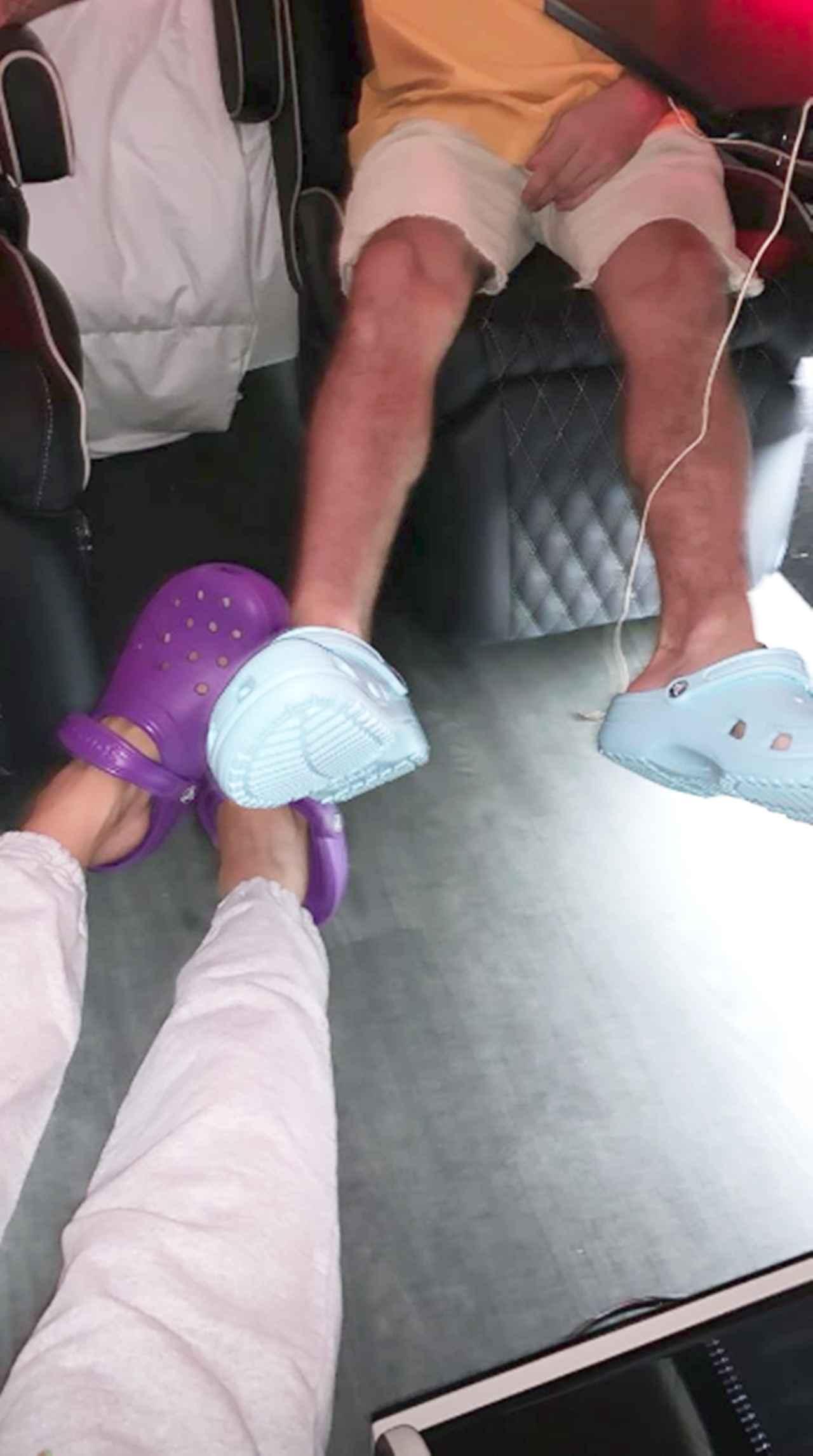 顔は写っていないが、手前の席に座っているのがヘイリーで、奥の席に座っているのがジャスティンだと思われる。場所は何かの乗り物の中。写真が投稿されたのは約20時間前で、ヘイリーはすでに日本に到着しているという点を考慮すると、プライベートジェットの機内とも考えられる。