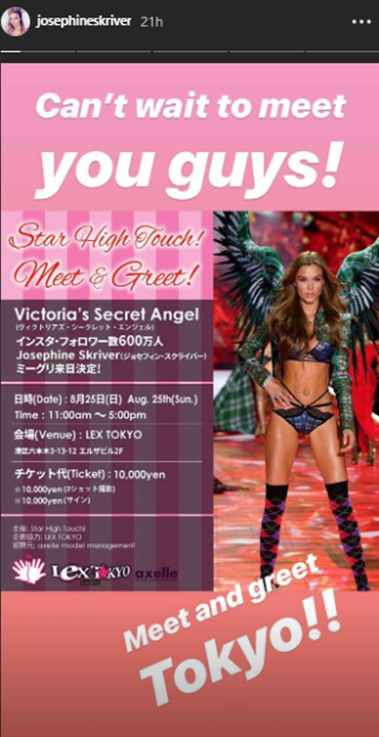 ヴィクトリアズ・シークレットのエンジェルであるジョセフィン・スクライバーが、8月に来日することを自身のインスタグラムを通して発表した。(フロントロウ編集部)