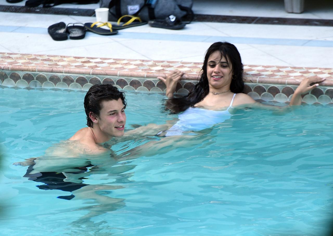 プールでイチャつくショーン&カミラを激写