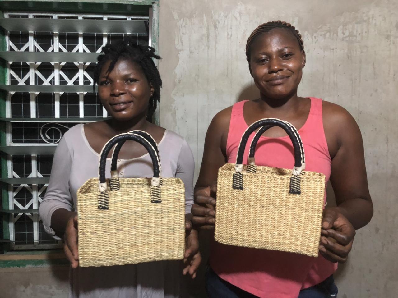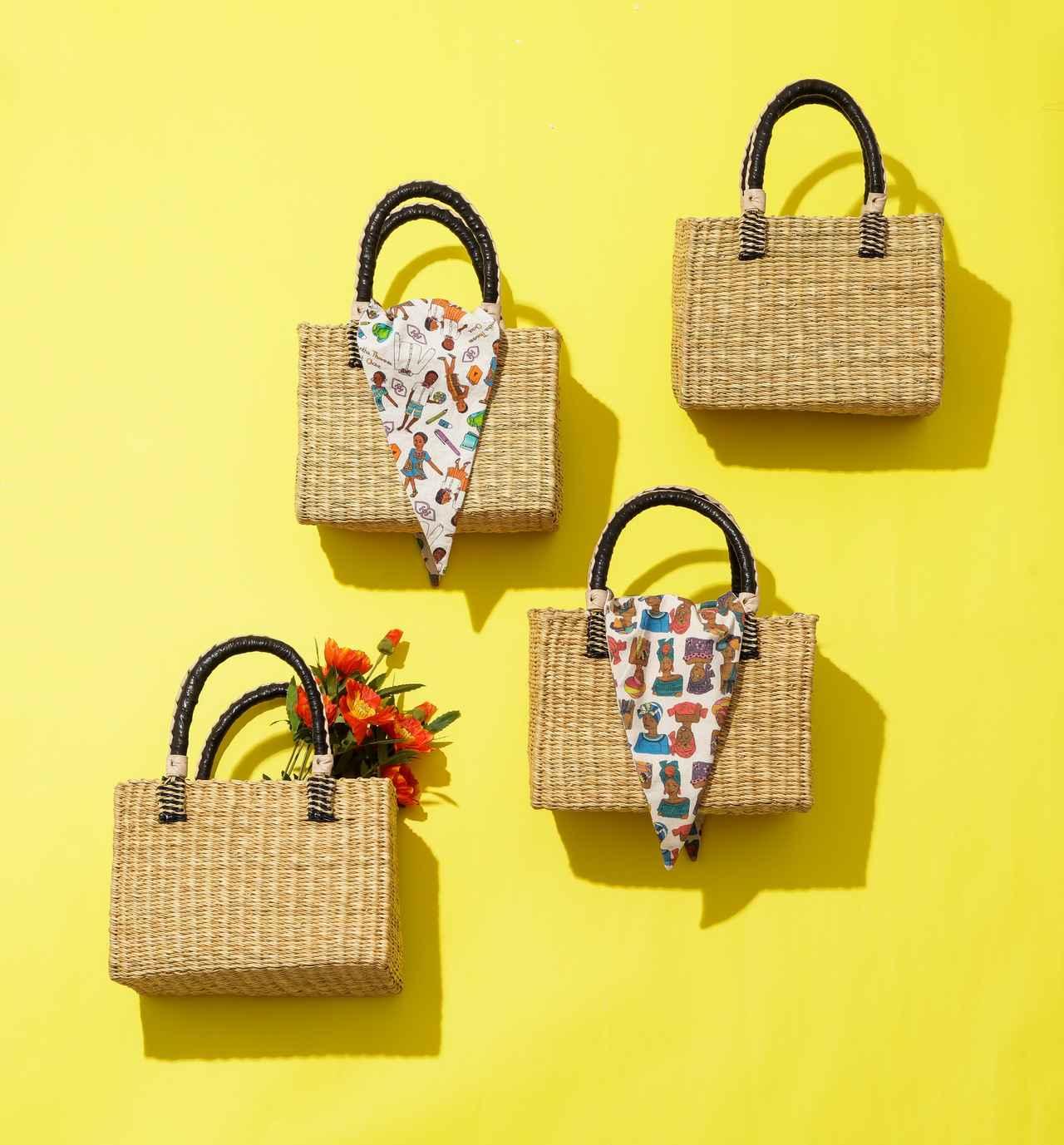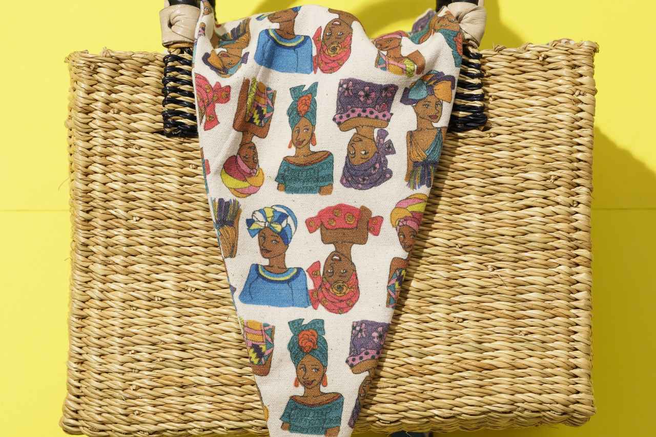 「Artist Lara」が描いたアートを使用したカゴバッグは、彼女が直接ガーナに訪問し現地で過ごすことによってインスピレーションを受けてデザインされたもの。