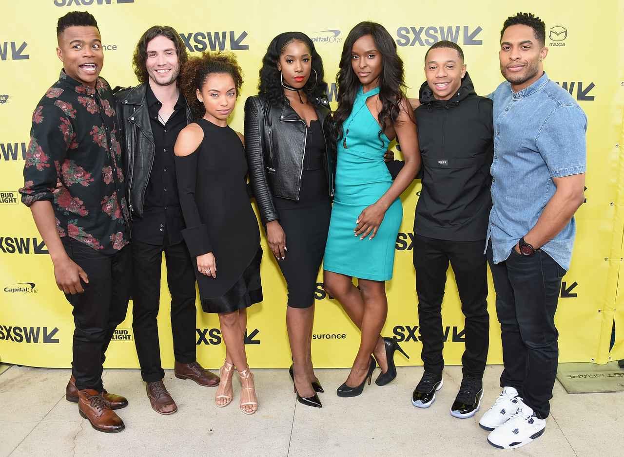 左から、レジー役:マルク・リチャードソン、ゲイブ役:ジョン・パトリック・アメドリ、サマンサ役:ローガン・ブラウニング、ジョエル役:アシュリー・ブレイン・フェザーソン、カロリーナ役:アントワネット・ロバートソン、ライオネル役:デロン・ホールトン、トロイ役:ブランドン・P・ベル。
