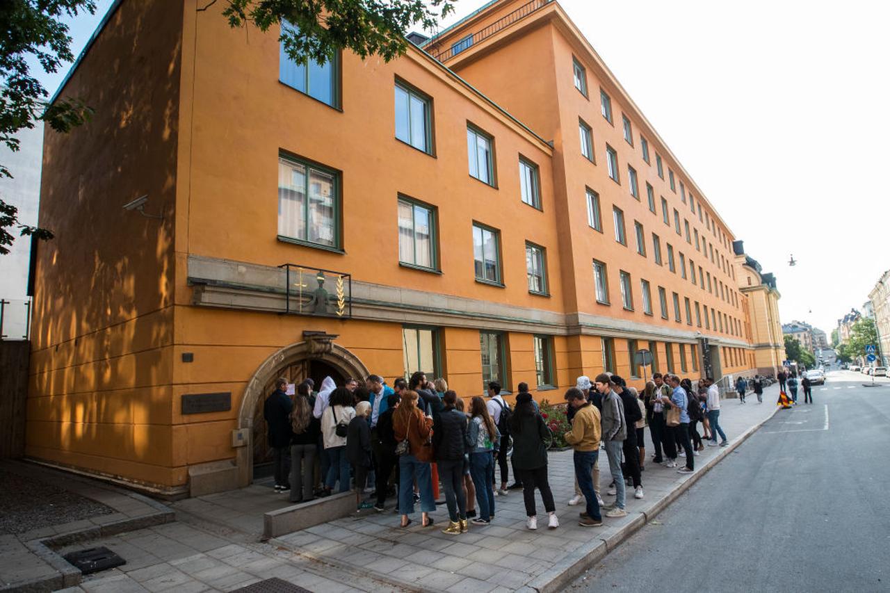 エイサップらの裁判が行われたストックホルム市内の裁判所。世界中から報道陣が押し寄せ、傍聴を求める人々による長蛇の列ができた。