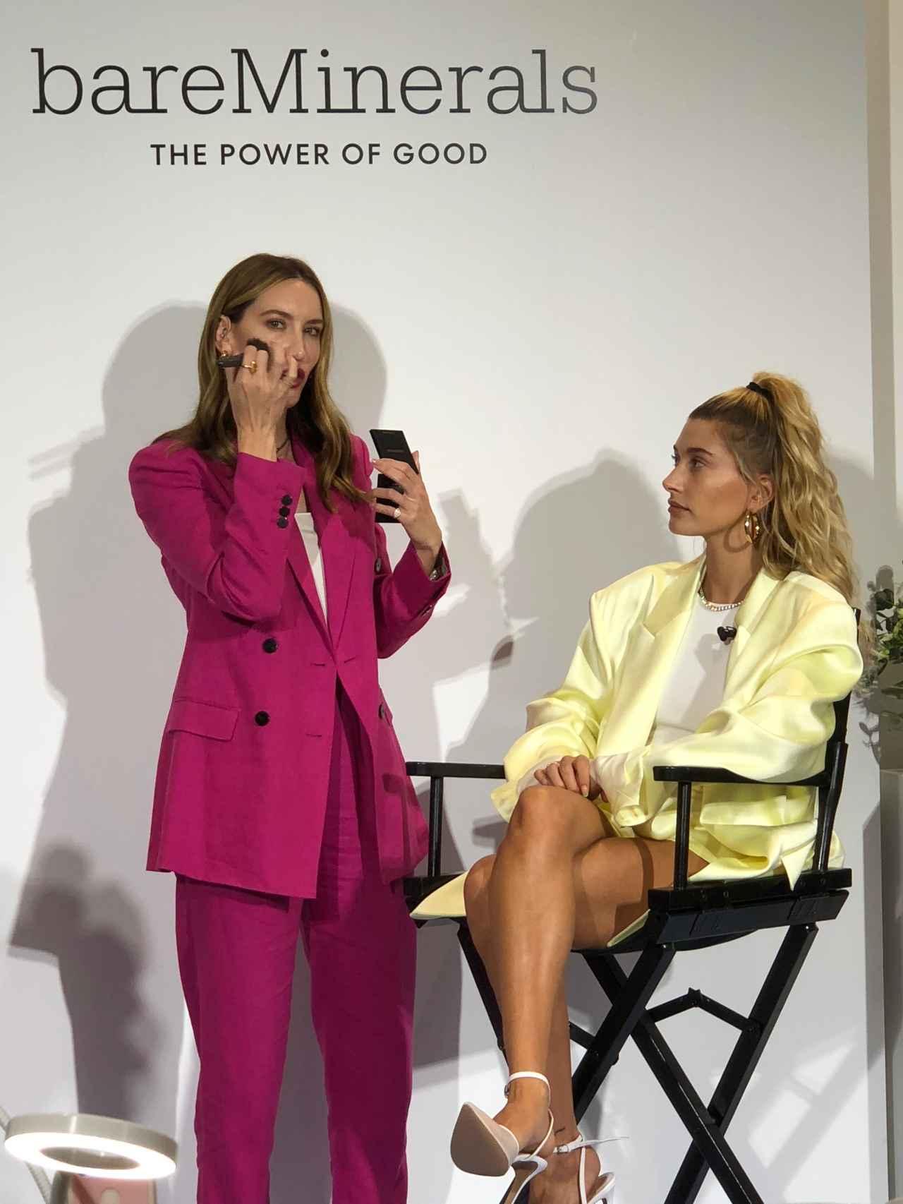 今回のベアミネラルのイベントは「昼の部」と「夜の部」に分けられており、昼はヘイリーのほかに、ベアミネラルのクリーン・ビューティー・メイクアップアーティストであるニッキ・デルーストを招いたメイクアップセッションを実施。CR ハイドレイティング ファンデーション スティックの使い心地について、ヘイリーが日本語で「ミズゴコチ」と口にする場面もあった。