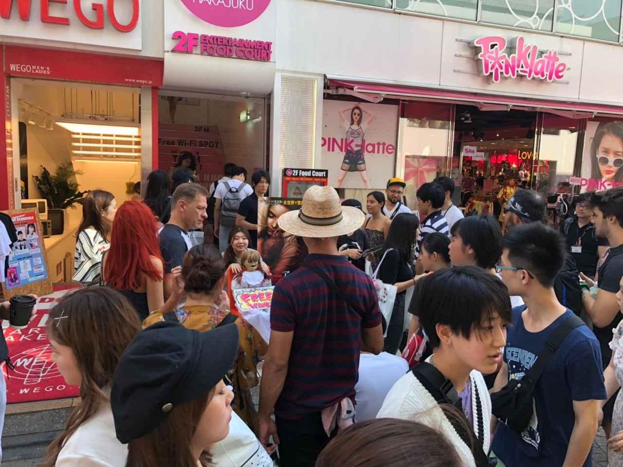 そんな大人気アナベルちゃんが、ハグの日にあたる本日8月9日(金)にJOL原宿にてフリーハグを実施。夏休みを満喫する日本の若者や家族連れをはじめ、観光客や、仕事の休憩時間にわざわざ会いに来たファンもおり、大盛況。