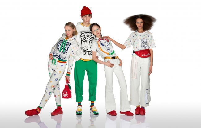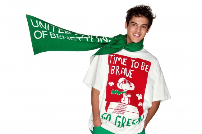 ベネトンのアーティスティック・ディレクターであるジャン=シャルル・ド・カステルバジャックは、「自分もいたわりつつ、地球も大切にしよう!」と、スヌーピーとその親友のチャーリー・ブラウンの力を借りて、環境を守る重要性だけではなく、刺激の強い化学物質から肌を守るために天然繊維を使用する必要性についても強く訴えている。