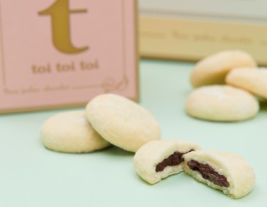 2019年に誕生したばかりの東京発のブランドtoitoitoからは、サクッホロッとした食感のクッキーを粉糖でコーティング。中にはなめらかなチョコクリーム入り。