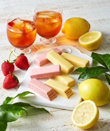 アフタヌーンティーからは、ウエハースをテーマにした“wafersWonderLand”がデビュー。薄く軽い食感に焼き上げた生地となめらかなクリームを7層にサンドし、ウエハースバーはサクサクとした食べごたえある食感。フルーツシュガーでコーティングしてリッチな味わいに。ストロベリーとレモン2種のアソート。