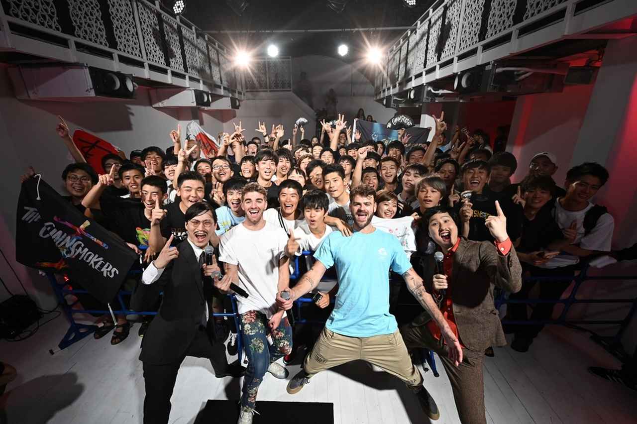 サマーソニック 2019でヘッドライナーとしてド迫力のパフォーマンスを披露したデュオ、ザ・チェインスモーカーズが日本初のファンイベントを都内で開催した。
