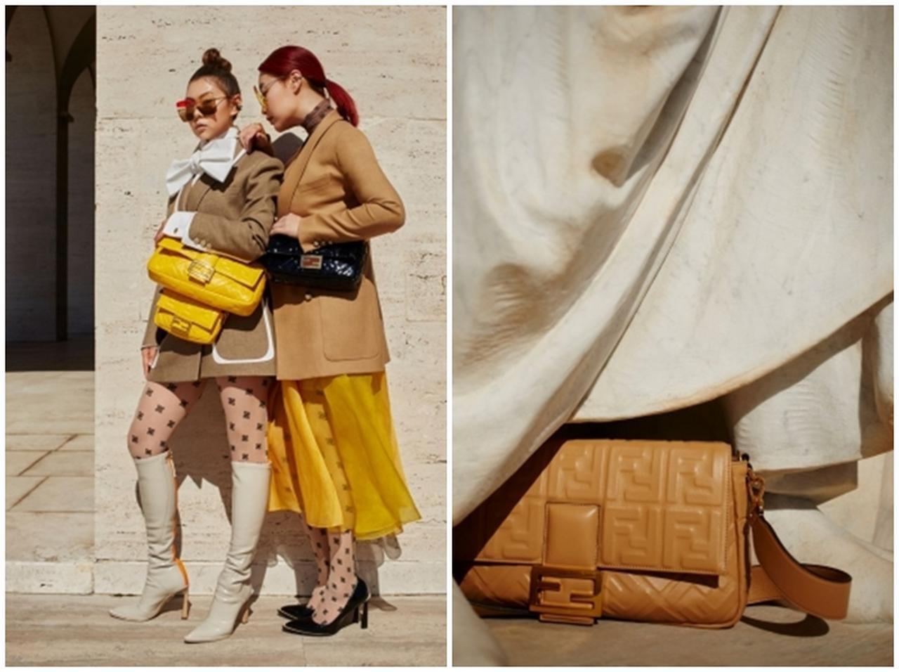 フェンディの「バゲット」は、ナッパレザーに「FF」ロゴをエンボス加工したシリーズからスパンコールのものまであり、サイズはラージからミニまでと豊富なラインナップ。さらにダークブラウンのユーティリティハーネスが付いた、スエード素材の最新「バゲット」まで、様々なバージョンが2人を魅了する。