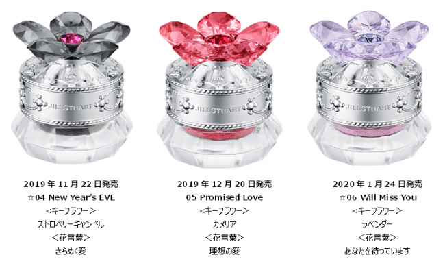 まるで一輪のブーケのような愛らしいデザインと、ひと月毎に変わるカラーと香り、花言葉まで添えられたストーリーも楽しめ、自分自身や大切な人へのプレゼントにも最適。12個のアイカラーの中には、「ジェリービジュー」オリジナルの香りも登場する。
