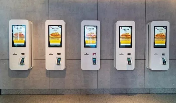 この店舗には、なんと座ることができる席はひとつもなく、店内にあるのは海外のマクドナルドでは一般的に普及しているセルフレジのタッチスクリーンの電子機器と商品を受け取るカウンターだけ。