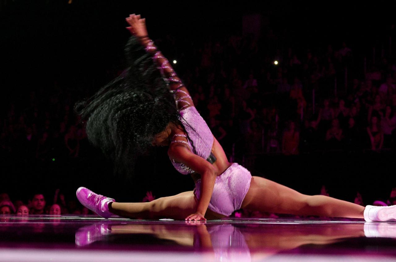 ノーマニの透き通る歌声が観客を湧かせるなか、カミナリの音とともに間奏に突入。するとバックダンサーたちは舞台から消え、広い舞台はノーマニ1人のものに。マイクと衣装を投げ捨てたノーマニは、完全なるダンサーモードに突入。その場で1回転をして、お馴染みのトゥワークをしたノーマニは、なんと手を後ろについて大回転。さらにその場で手をついたまま脚を上げ開脚し、最後にふたたびトゥワークをし、バックダンサーたちと合流した。