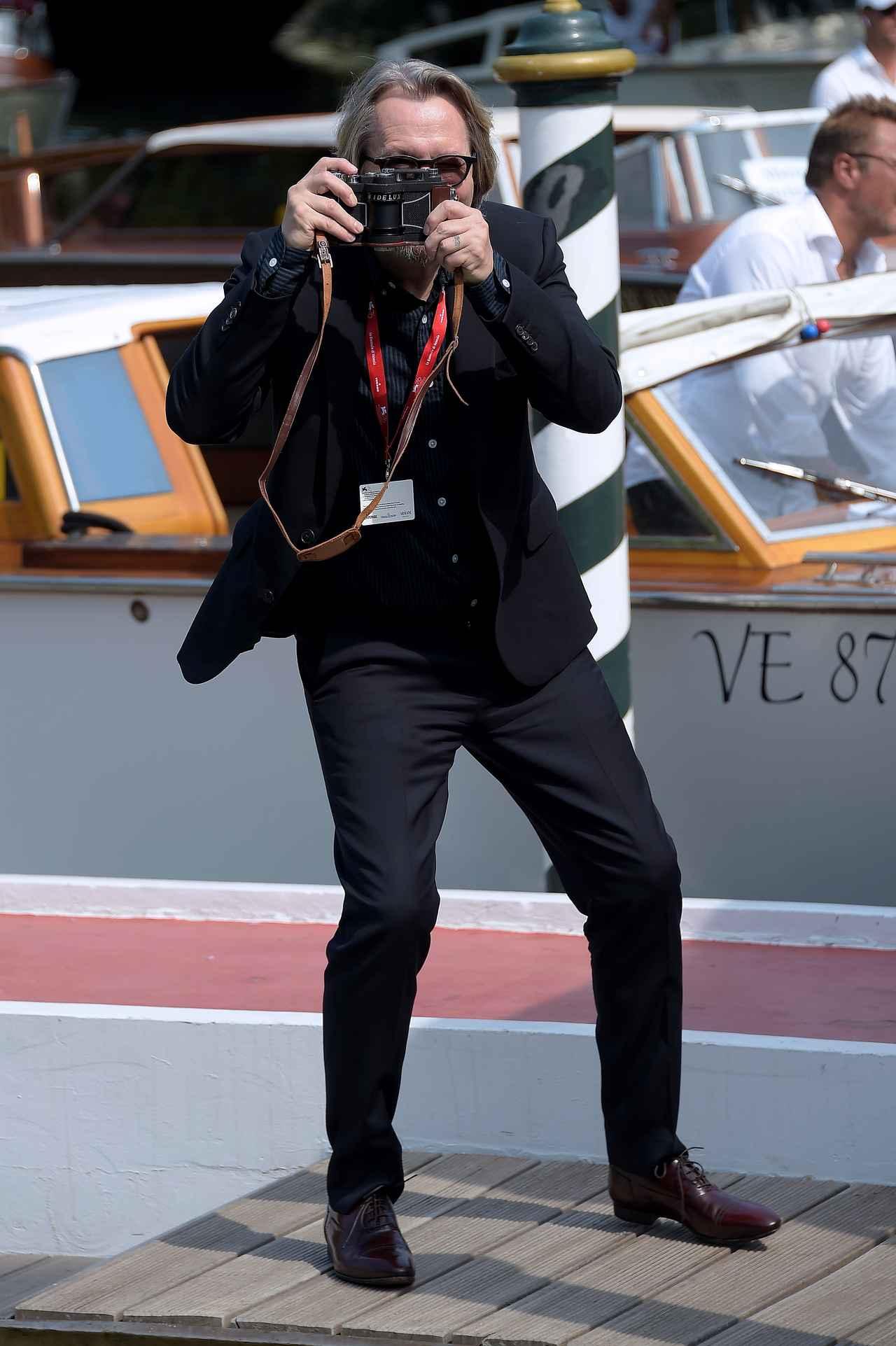 水の都ヴェネチアならではの交通手段であるボートで映画祭に会場入りしたゲイリー。その片手には、パノンカメラ商工という日本のカメラメーカーによるワイドラックスというヴィンテージカメラをしっかり持っていた。