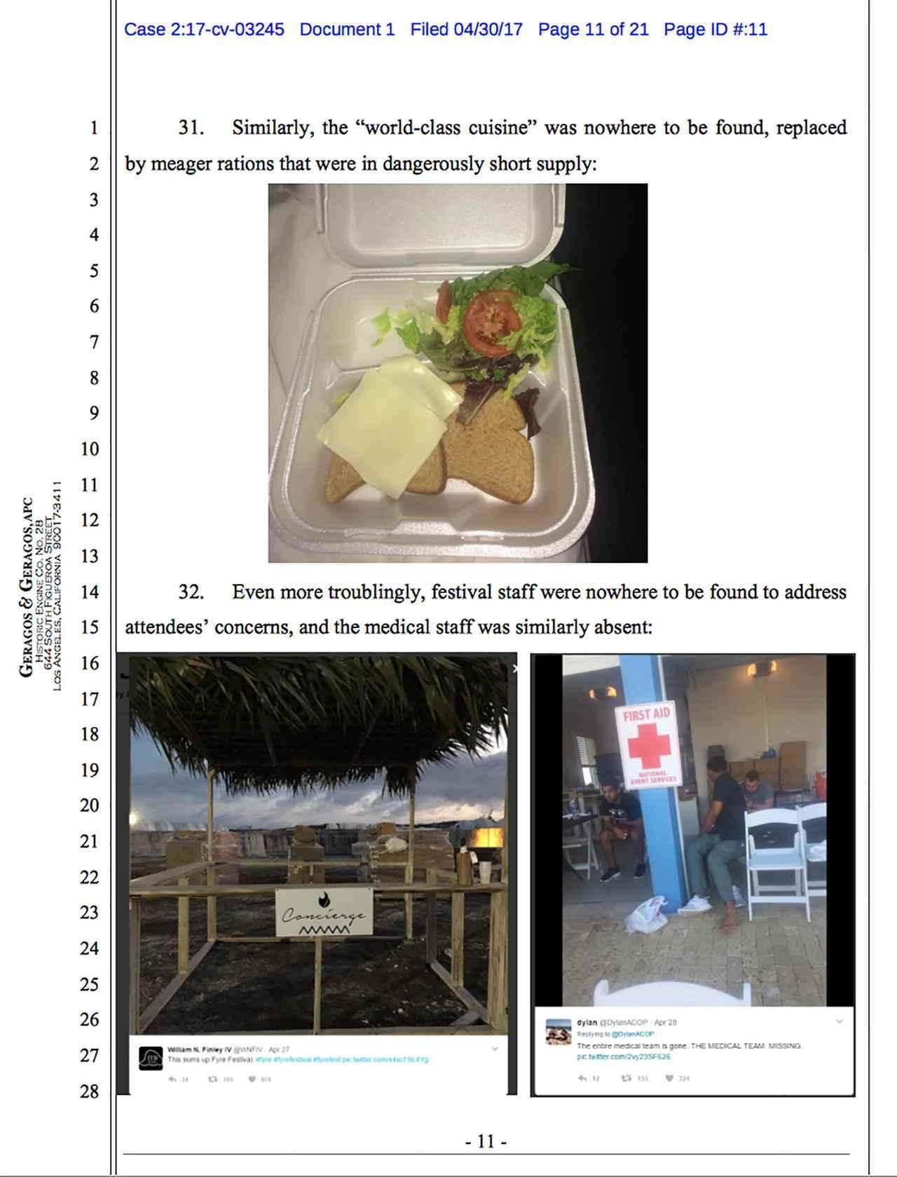 しかしいざフェスが開始されてみると、宿泊エリアにはただの簡易テントが立ち並び、食事もパンにチーズが乗っただけのものにちょこんと添えられたサラダという悲惨さ。ネット上では、想像とかけ離れたフェスを前に泣き崩れたり激怒したりした参加者が動画を拡散し、そんな状況を知った出演予定のシンガーたちが次々と出演辞退。ファイア・フェスティバルは開催初日で中止となる事態に。
