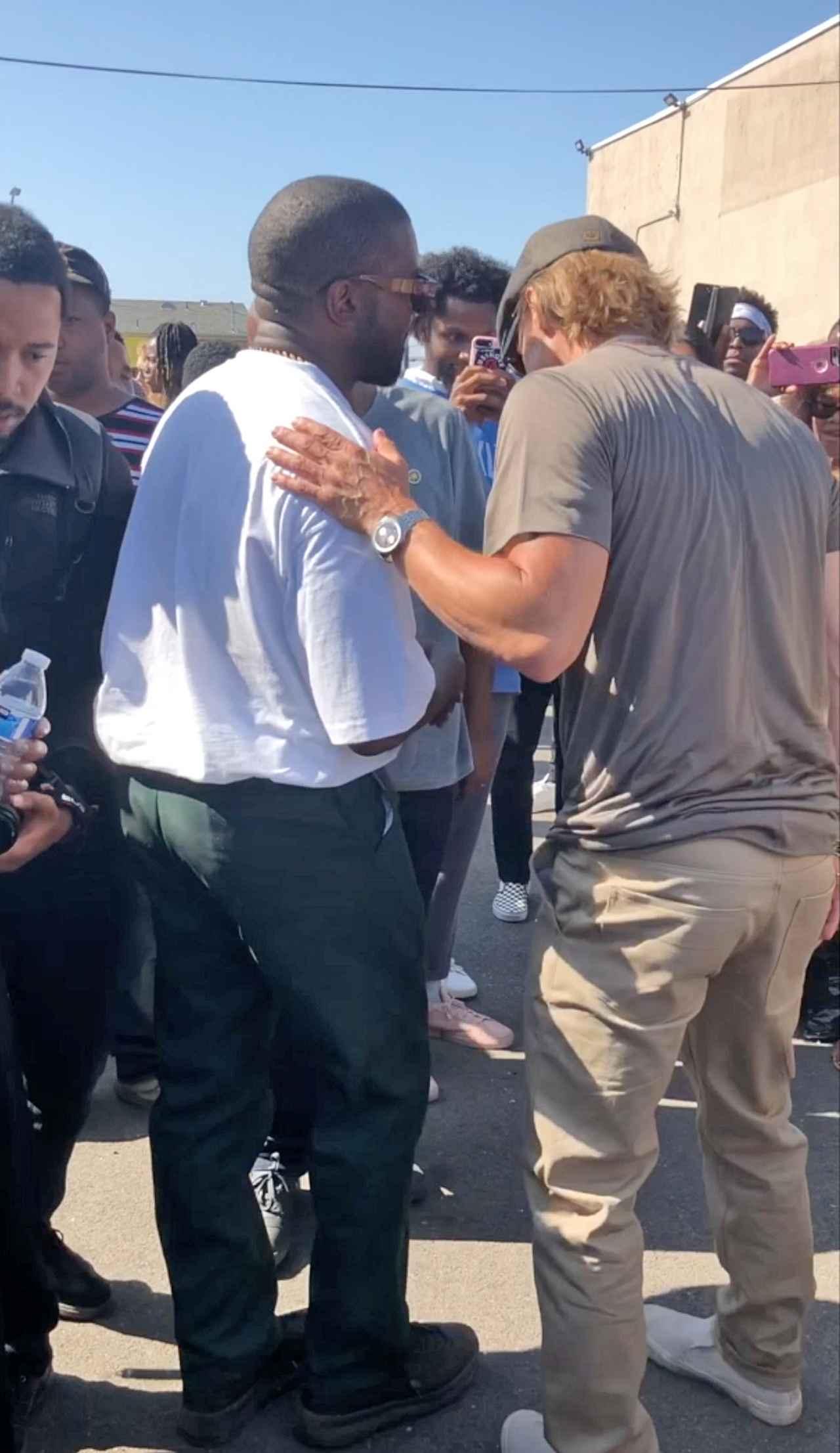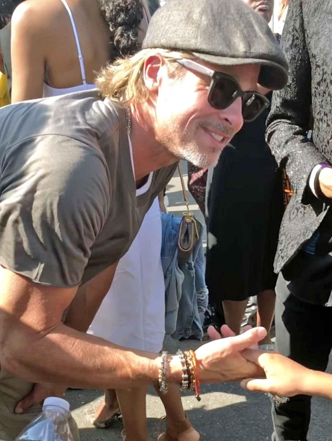 教会の駐車場で行なわれたという礼拝では、ブラッドがカニエと仲良さそうに雑談した後、周りにいた一般人へ快くファンサービス。写真を撮ったり、子供にやさしく話しかけたりする姿が目撃された。