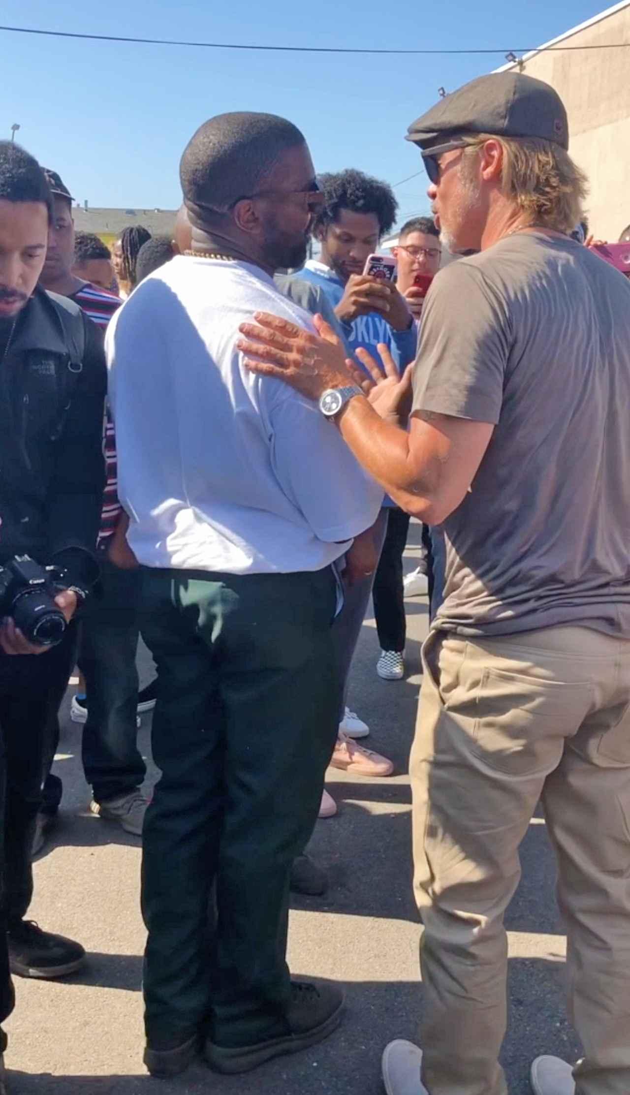 “教え”という名のカニエのパフォーマンスを求めて多くのセレブが参加するようになったこの日曜礼拝に、なんとブラッド・ピットが参加。