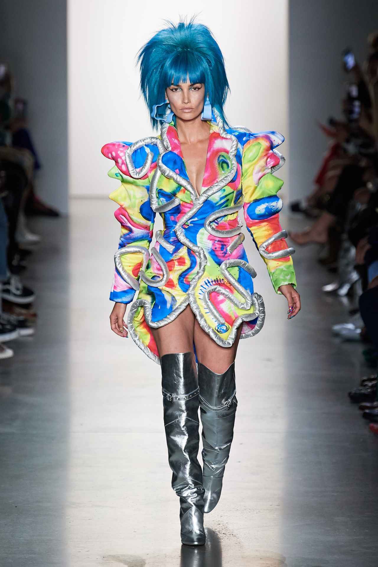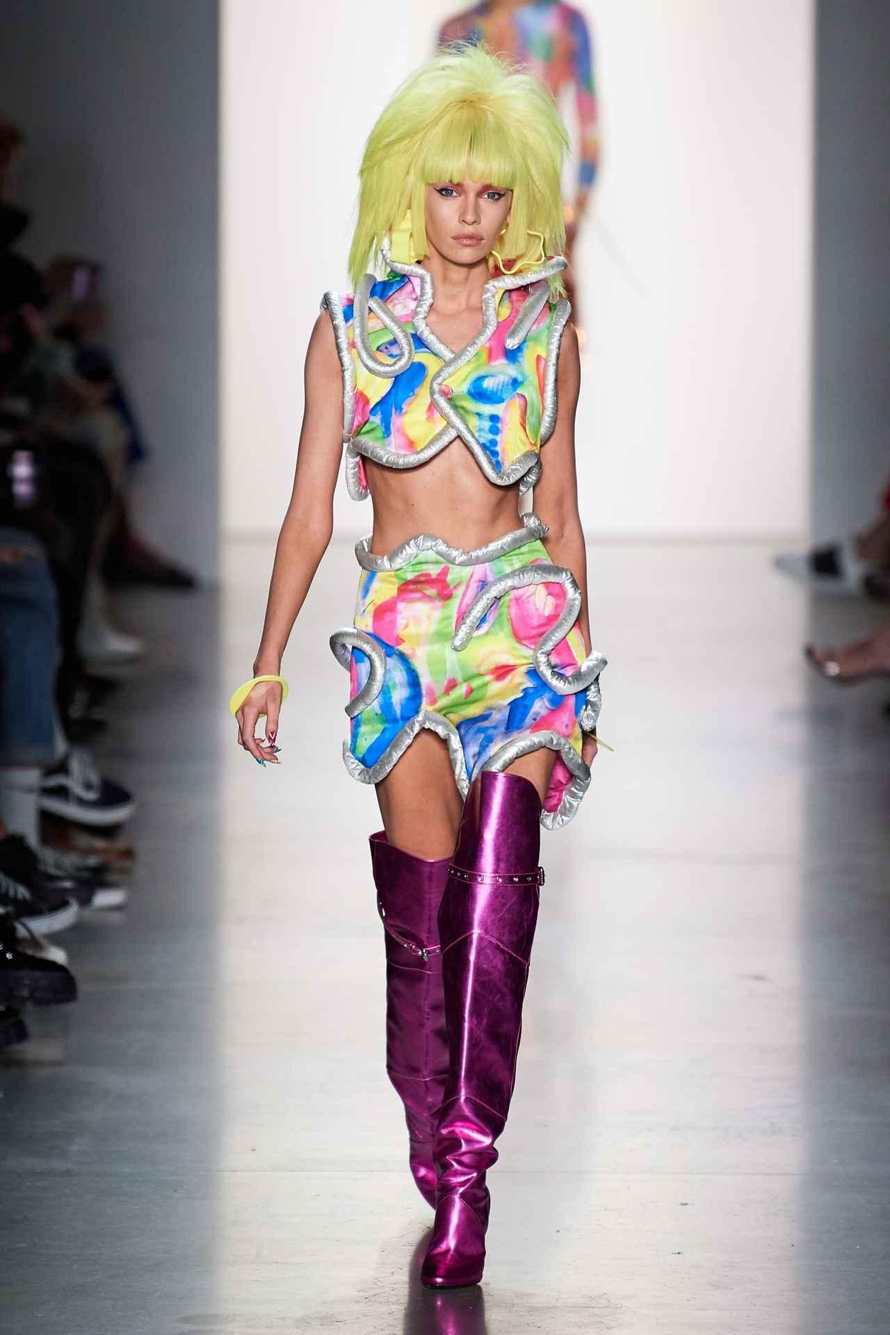 毎度話題を集めるジェレミー・スコットの最新コレクションは、宇宙時代のポップバンドというテーマになっており、モデルたちは巨大なカラーウィッグを着用してランウェイに登場。