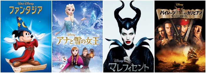 「ファンタジア」©2019 Disney、「アナと雪の女王」©2019 Disney、「マレフィセント」©Disney Enterprises, Inc.、「パイレーツ・オブ・カリビアン/呪われた海賊たち」©2019 Disney