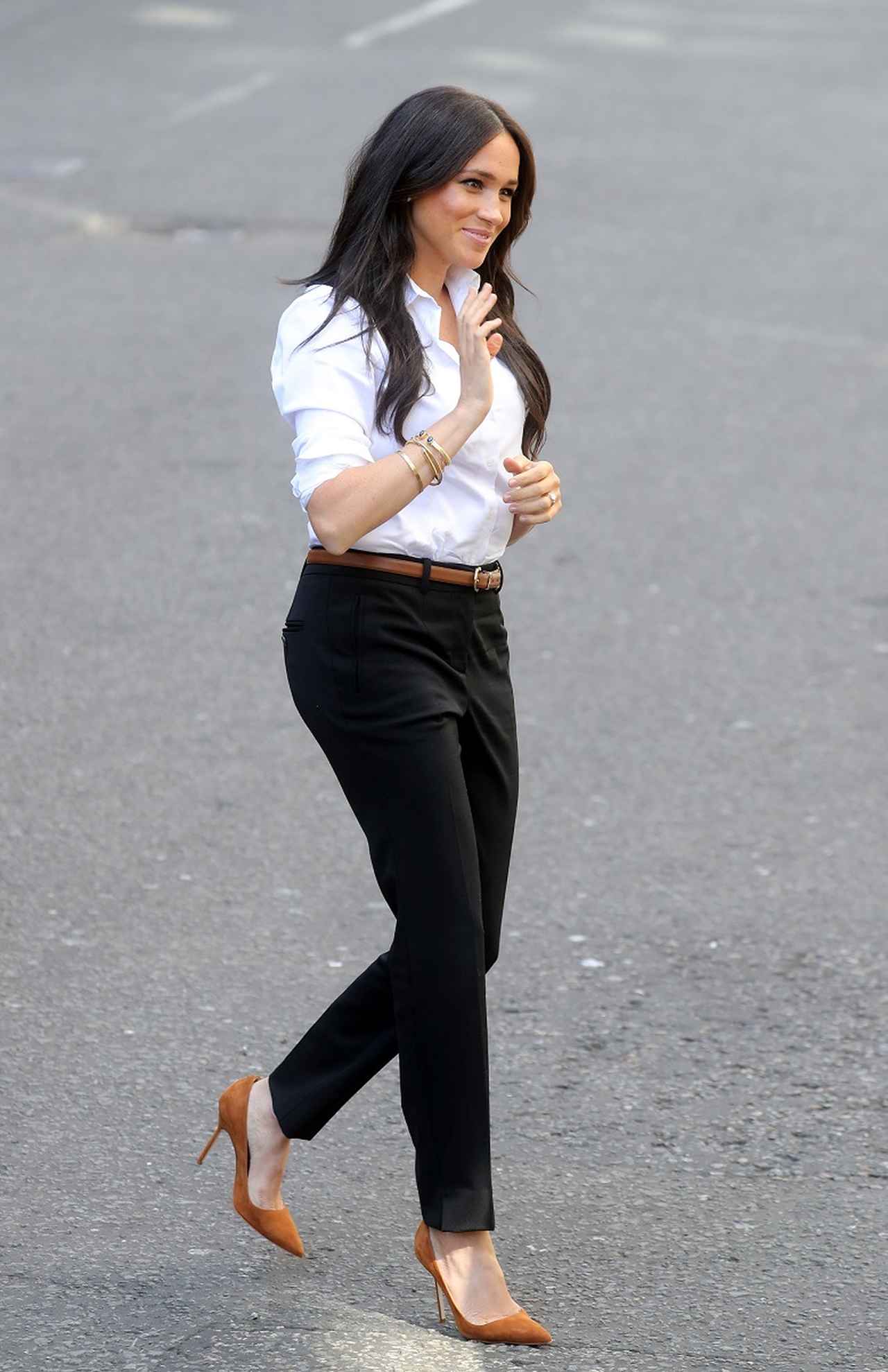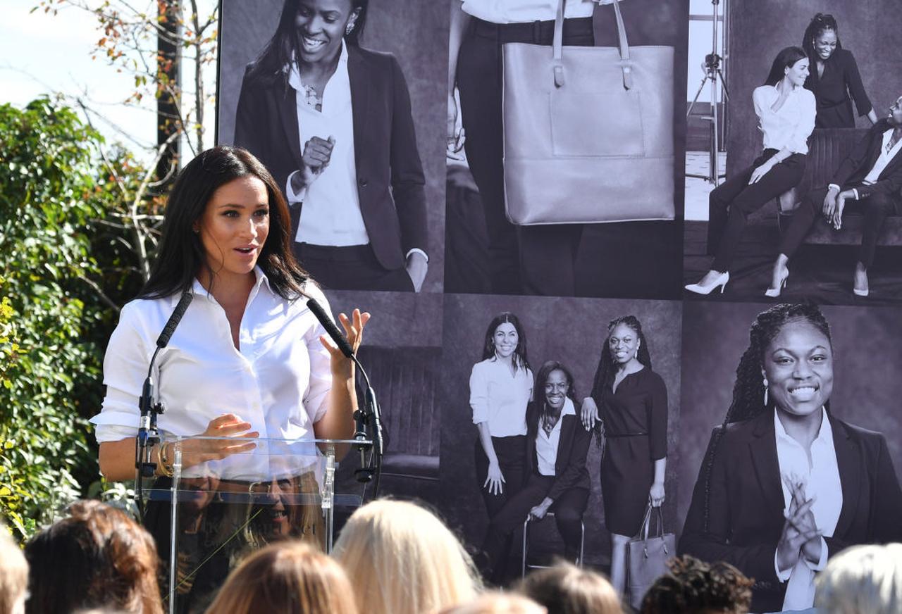同コレクションの白シャツと黒いスラックスを履いて、会場となったデパート、ジョン・ルイスに登場したメーガン妃は、集まった女性たちに向けて、メモを見ることもなく、堂々としたスピーチを行なった。