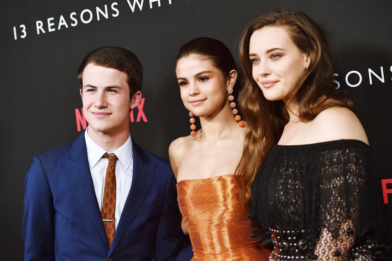 ドラマ『13の理由』のプレミアにて。左からクレイ役のディラン・ミネット、セレーナ、ハンナ役のキャサリン・ラングフォード。