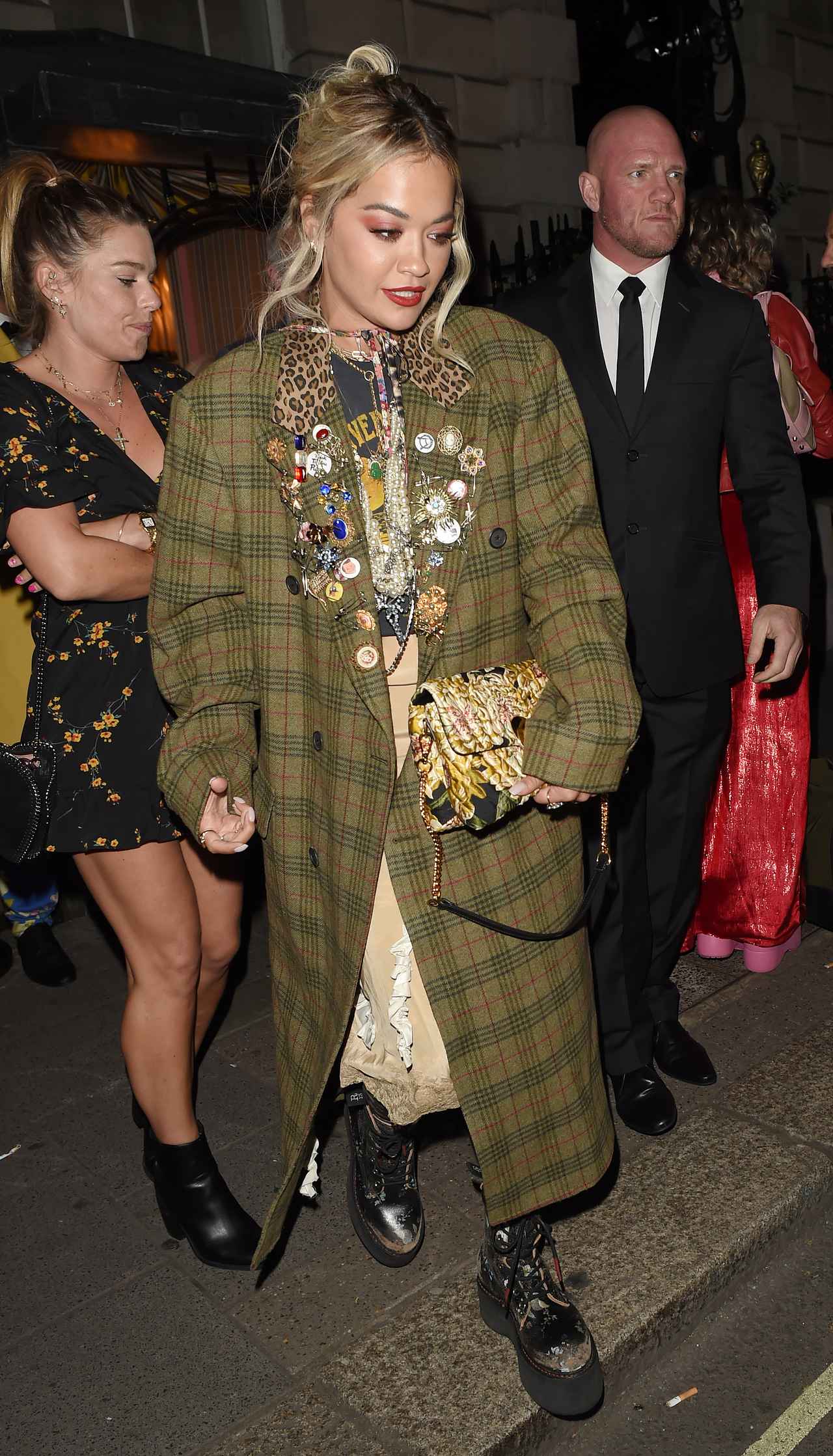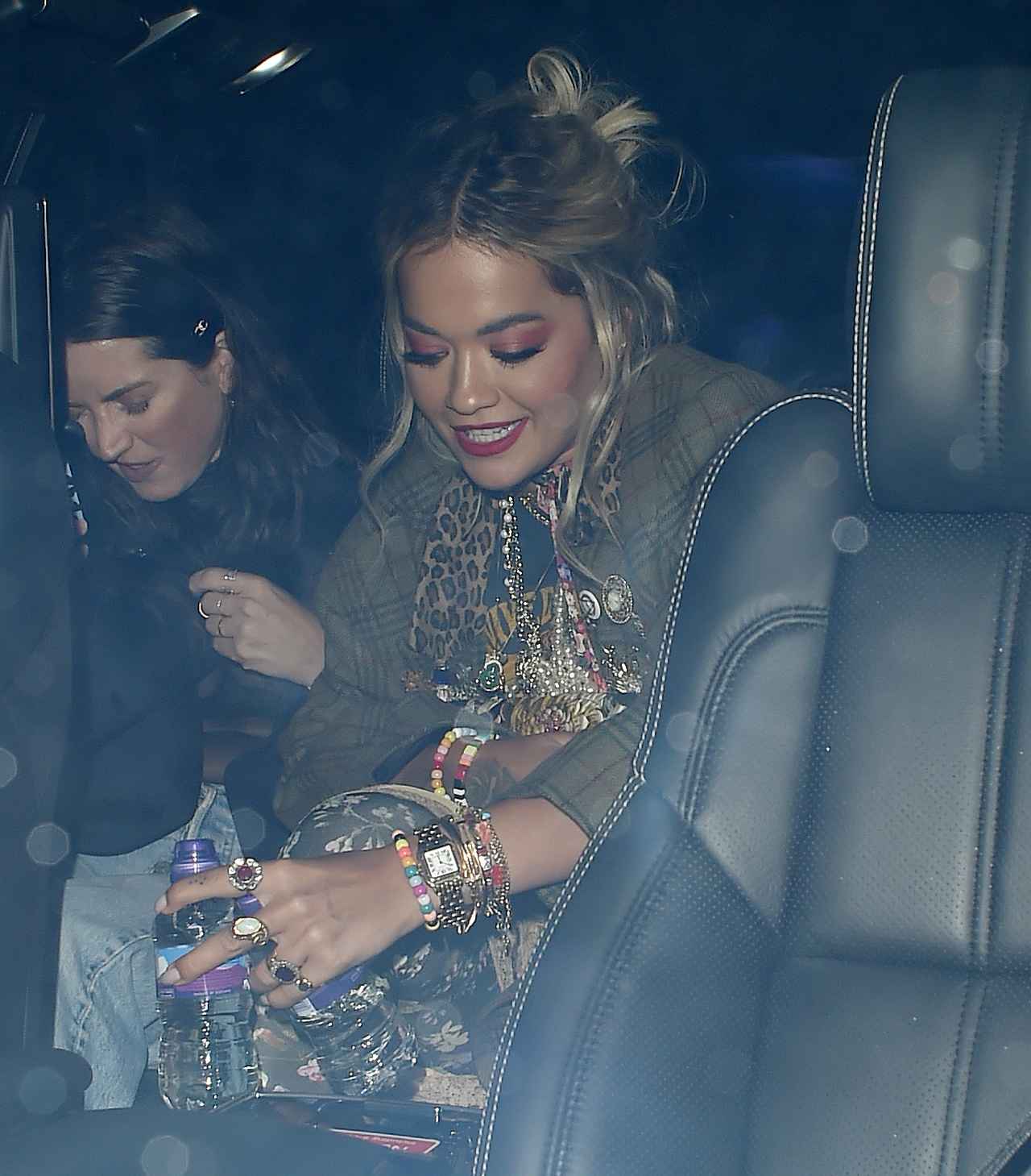 また、翌18日には会員制クラブであるアナベルズ(Annabel’s)でパーティー。この日はロングコートにTシャツ&パンツという、前日とは打って変わってマニッシュなスタイルだったリタは、午前2時にクラブから出てきて車に乗り込んだ時にはテンション高めにお喋りしており、この日も楽しい一夜を過ごしたよう。