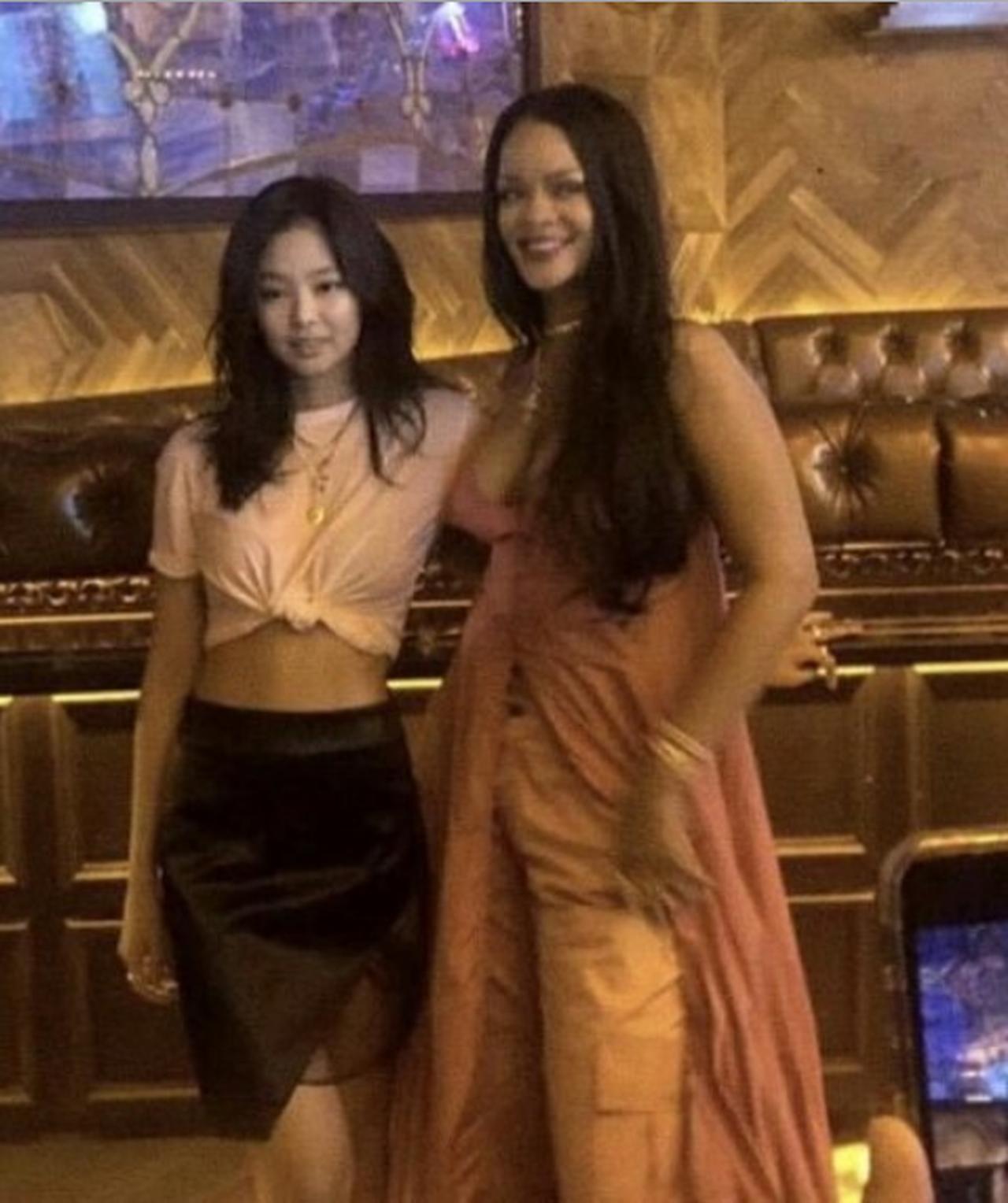 リアーナのプライベートパーティーに招待されたのは、アリアナ・グランデもファンということを公言する韓国のガールズグループであるブラック・ピンクのジェニー。2人は会場内で2ショット写真を撮影し、その後もジェニーの友人たちも交えてセルフィーを撮っていた。