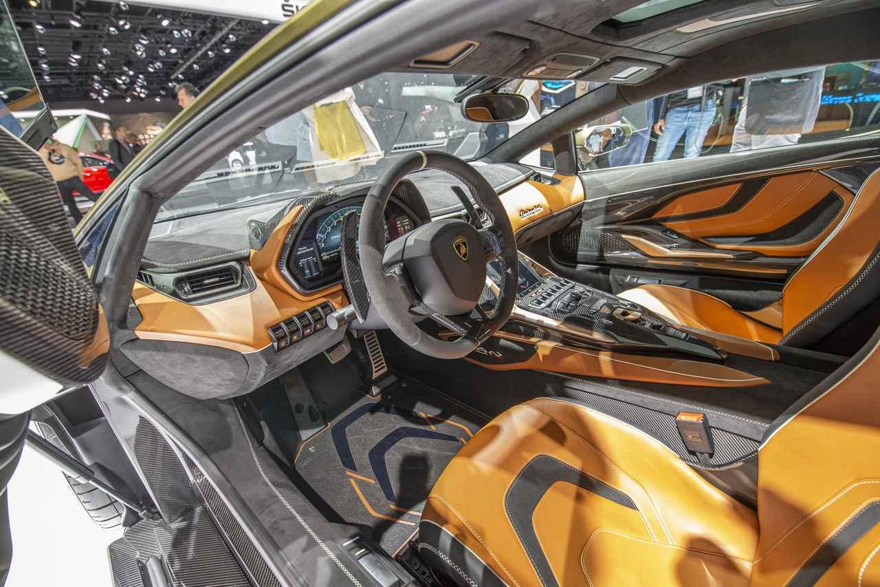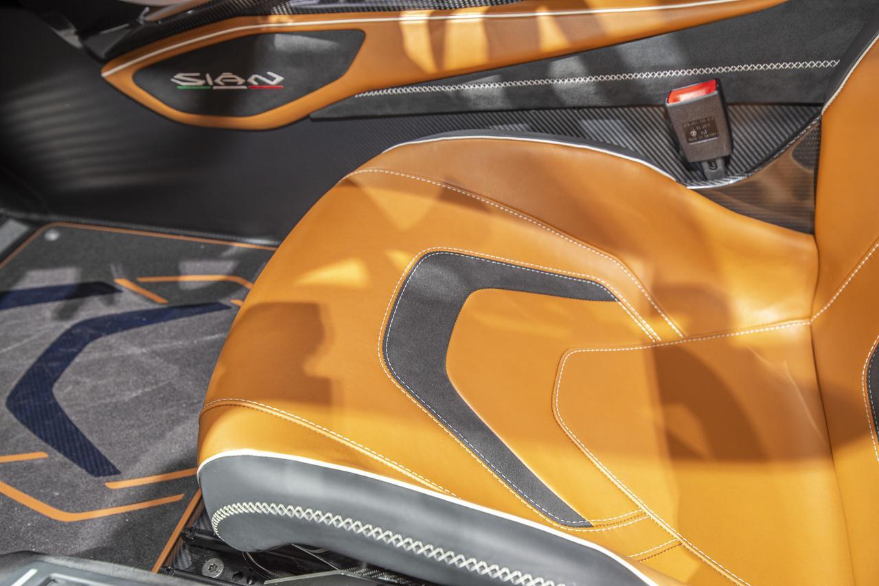 ランボルギーニ社のパーソナライゼーションプログラムにより、「シアンFKP37」のどのような場所にも、最高品質を誇るマテリアル、アルカンターラを選ぶことが可能となっている。天井から床、もちろんシート、そしてレザーとのコンビネーションを選ぶことも可能。