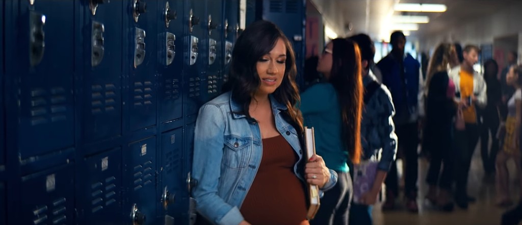MVの冒頭で、アリアナに憧れるあまり、「アリアナが妊娠しているというウワサを聞いて、私も妊娠しちゃったの…」と気まずい表情を浮かべていたコメディ女優のコリーン・バリンジャー演じる女子高生は、香水CM動画では無事出産を終えママに。
