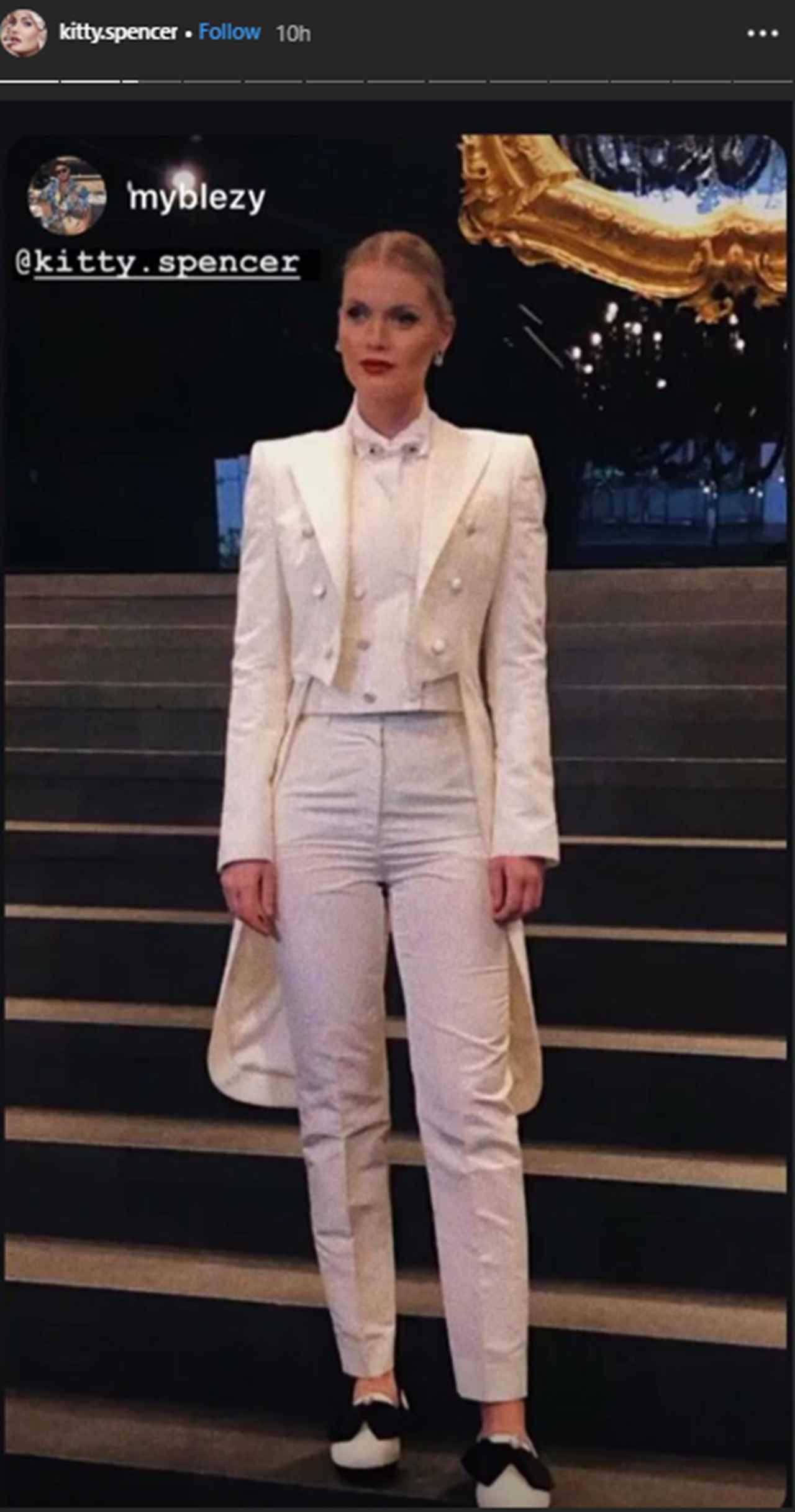 普段、公の場に登場する際はドレス姿が多いキティだけれど、スーツもばっちりと着こなし貴公子風スタイルも似合うということを証明した。(フロントロウ編集部)