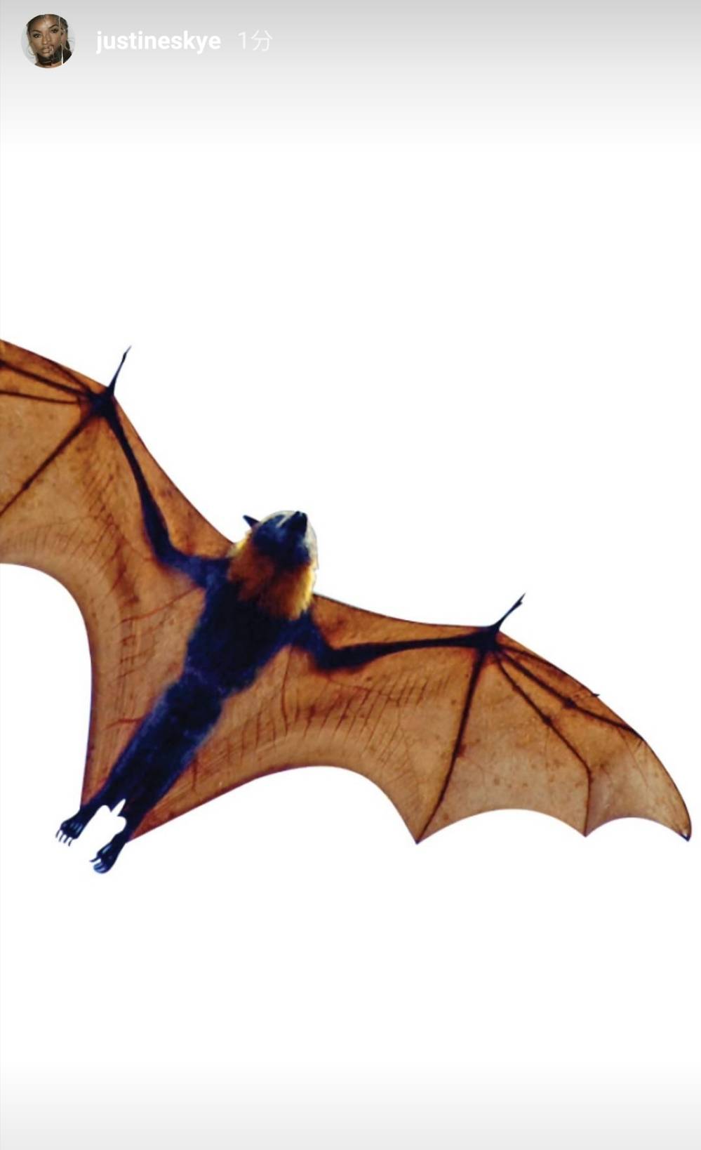 巨大コウモリの存在は、注目シンガーのジャスティン・スカイも驚いたようで、ジャスティンは自身のインスタグラムのストーリーズにジャイアント・ゴールデン・クラウン・フライング・フォクスと思われるコウモリが空を飛ぶ写真をアップした。