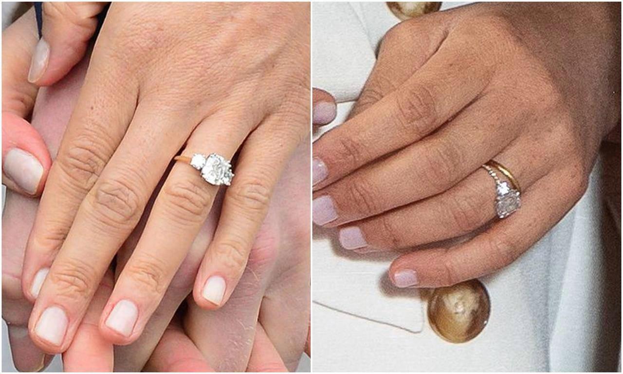 2017年にヘンリー王子からプロポーズされた際、ヘンリー王子が以前から「世界で一番自分らしくいられる場所」と語るボツワナ共和国を原産とする3カラットの大粒のダイヤの両脇に、ヘンリー王子の母である故ダイアナ妃のジュエリーコレクションから選出された2つのダイヤを配した婚約指輪を贈られたメーガン妃。