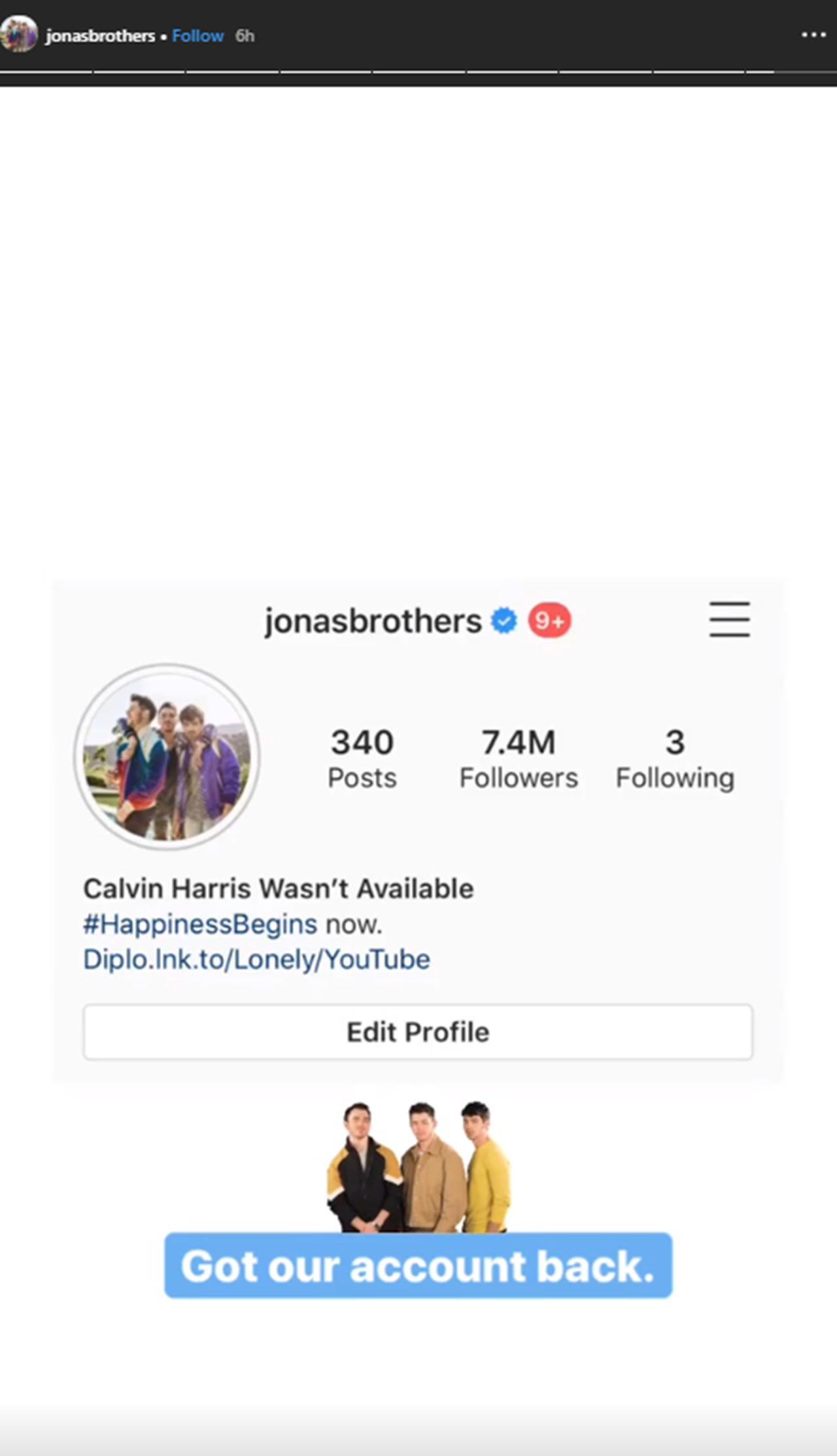 しかし、その数時間後、ジョナス・ブラザーズはようやくアカウントが戻ったことをファンに報告。メンバーの元にアカウントが戻っても、ディプロが投稿した写真はそのまま残っており、ディプロが乗っ取った証拠が残っている。