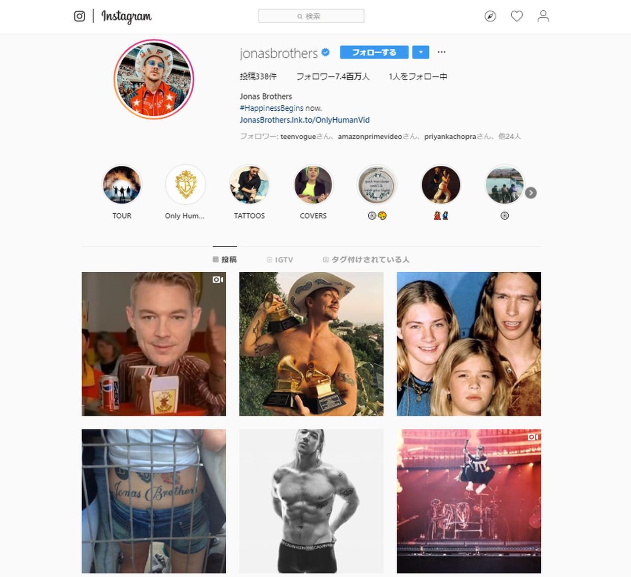 ジョナス・ブラザーズのインスタが乗っ取り被害