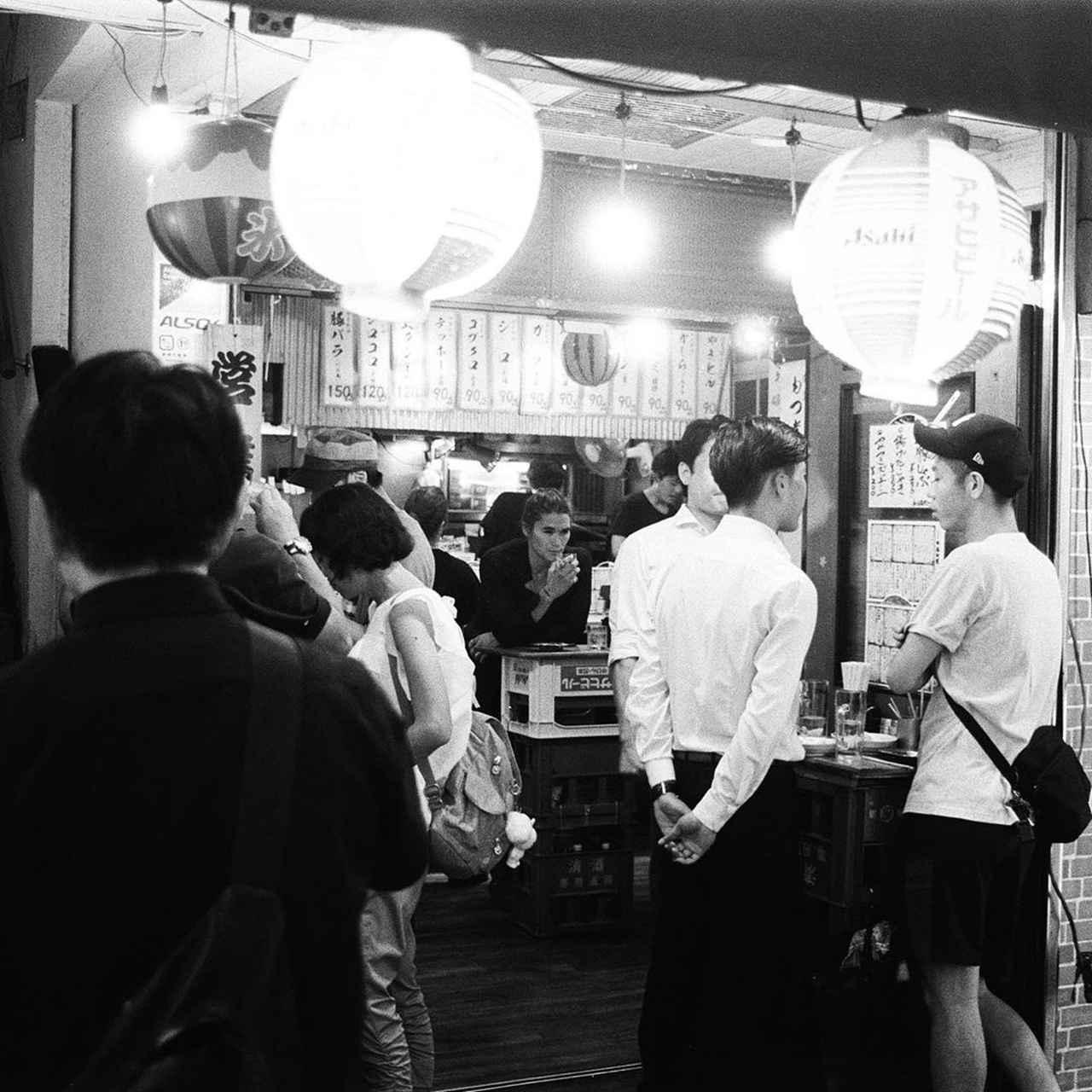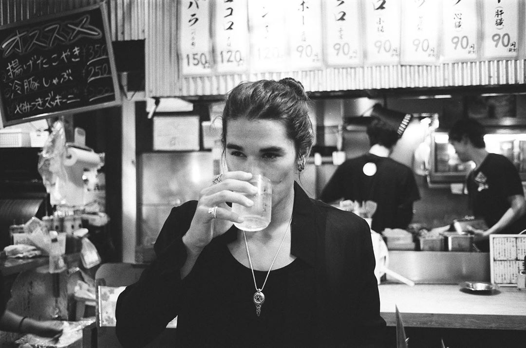 ブーブーが日本で訪れていたのは、なんと居酒屋。メニューが書かれた黒板や短冊が並ぶなんともディープな店内で、グラスを片手にポージング。フロントロウ編集部のインタビューで、「狭い立ち食いレストランで食事をした。素晴らしい経験だったよ」と興奮気味に語っていたブーブーだけれど、そのときの写真のよう。