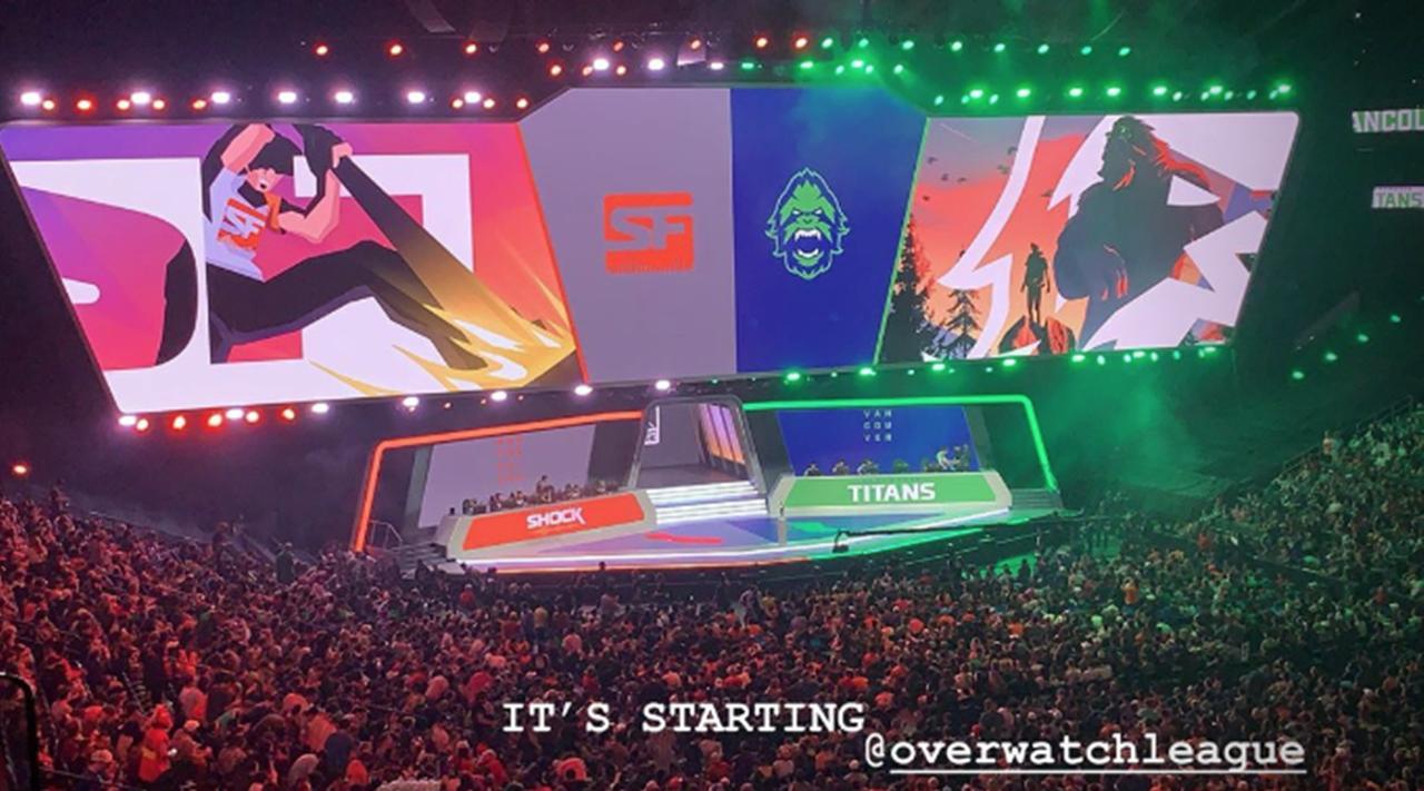 今回、ディランとバーバラが訪れたのは、アクションシューティングゲーム「オーバーウォッチ(Overwatch)」 の国際的なプロeスポーツリーグの試合。