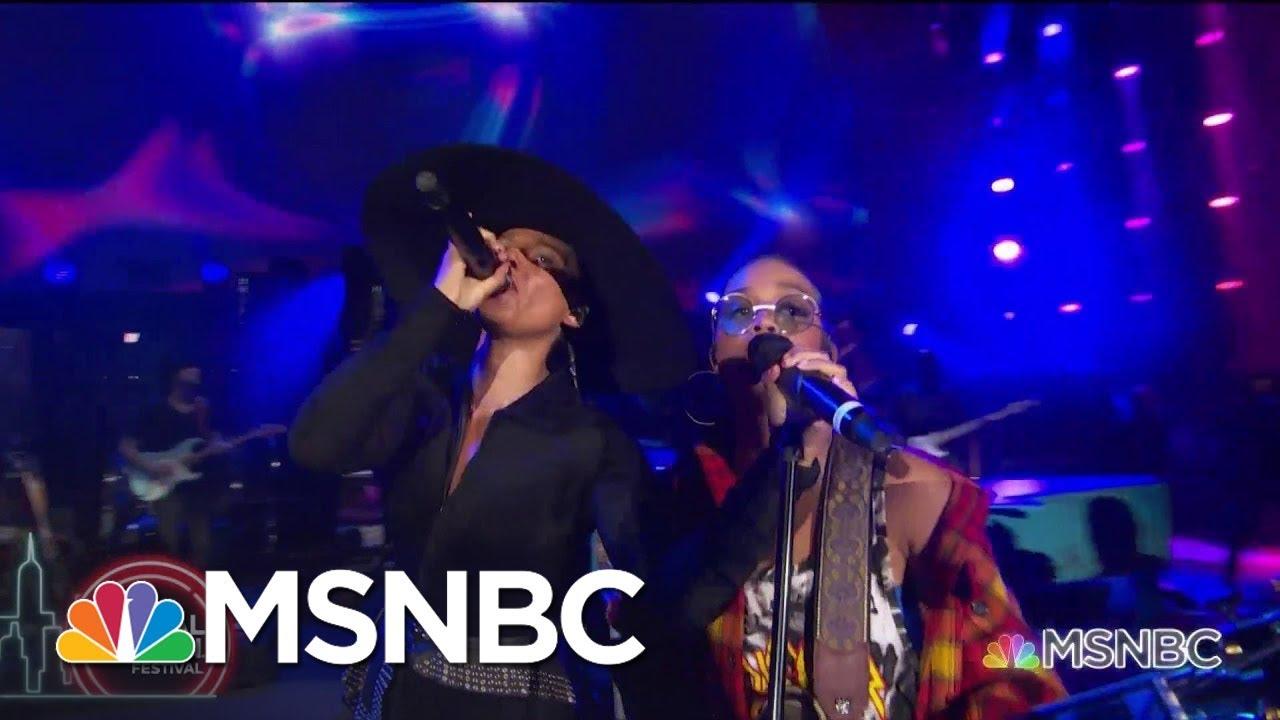 アーティスト同士の夢の共演が実現するのも豪華なフェスならでは。団結することの大切さを訴えたアリシア・キーズは、2019年に初めてグラミー賞を受賞した若手アーティストのH.E.R.を自身のステージへ招いた。アリシアはピアノ、H.E.R.はギターでエアロスミスの「ドリーム・オン」をカバー。