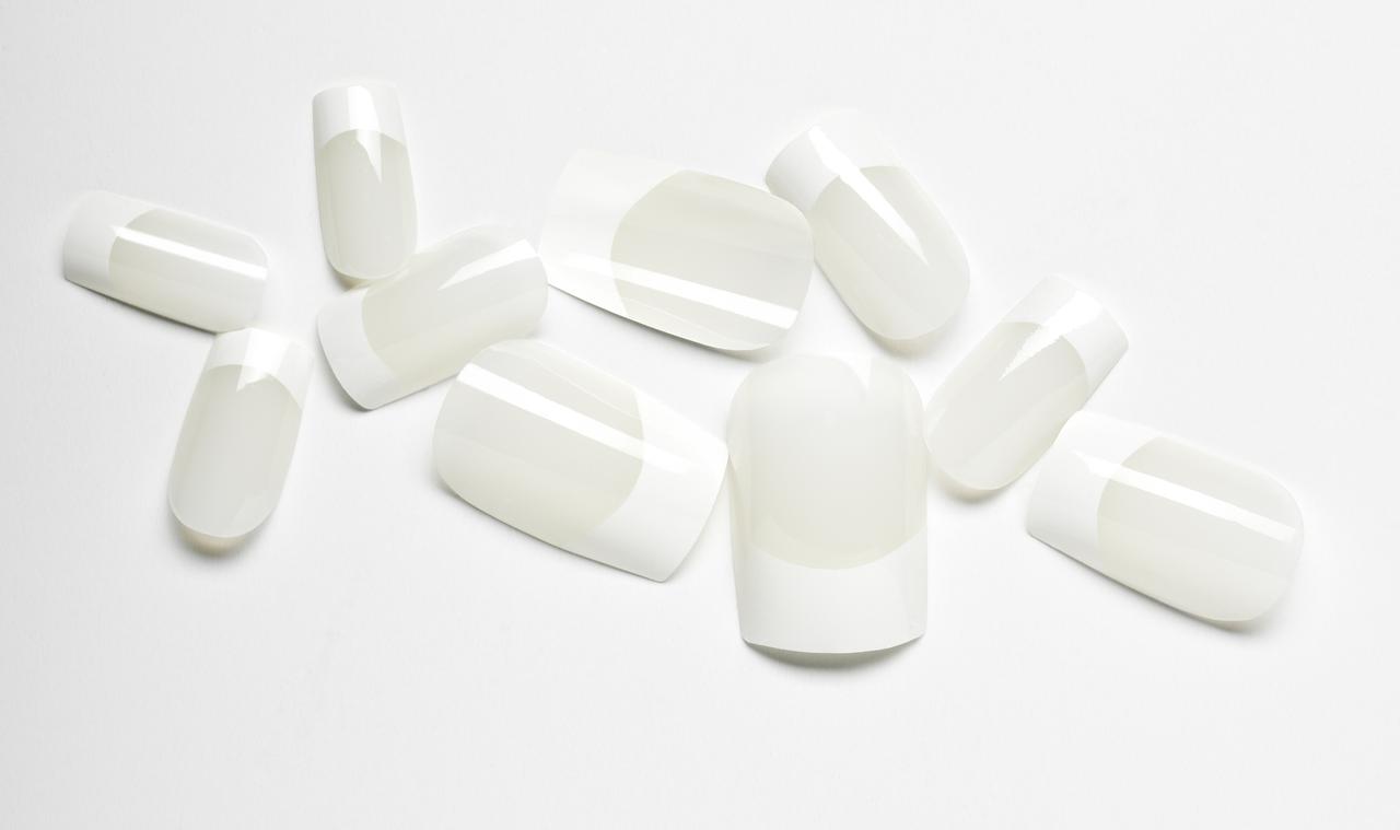 2:次に、自分の爪に合わせた無地のネイルチップを貼り、上からお気に入りのマニキュアを塗る。