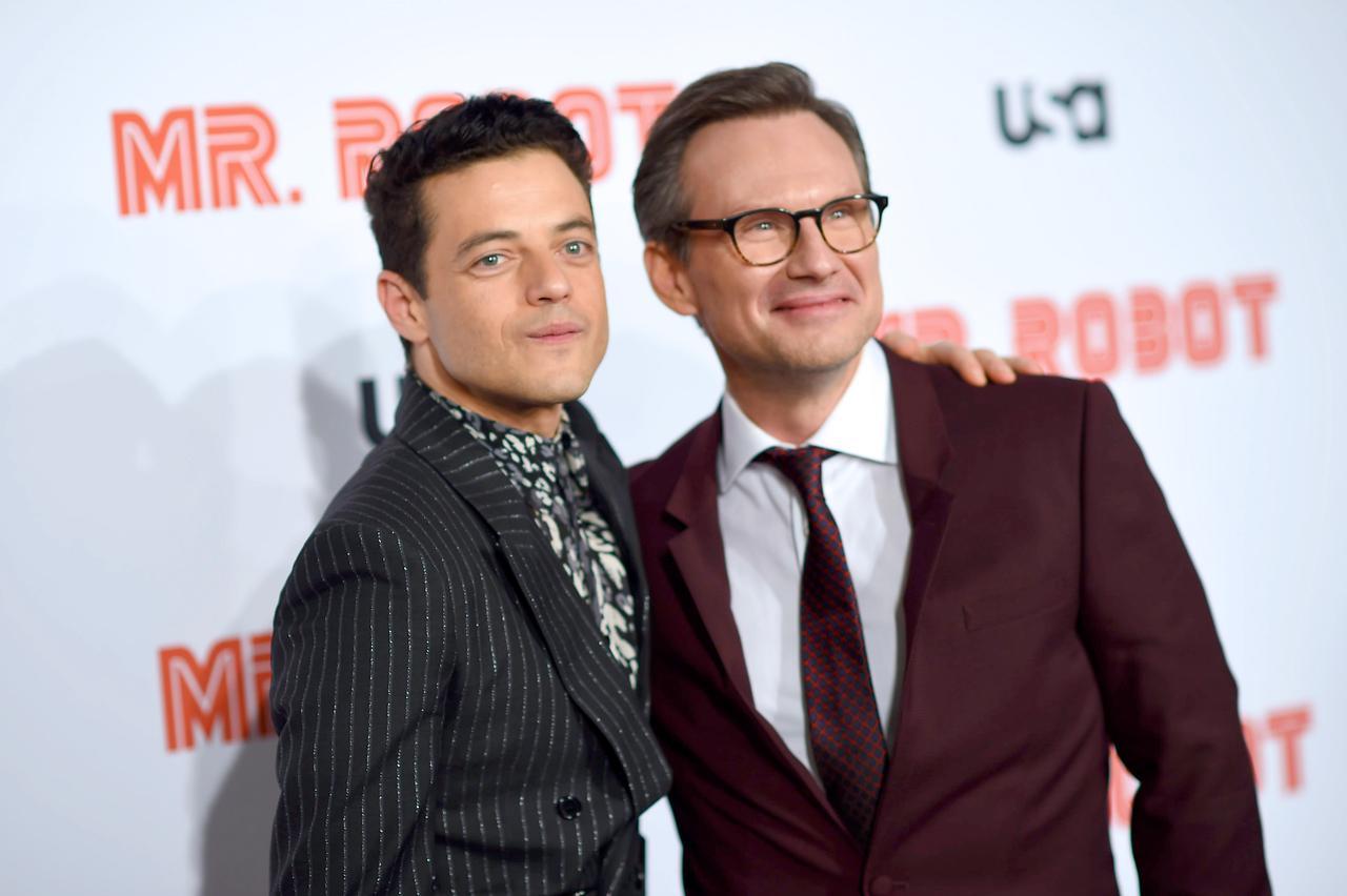 『MR.ROBOT / ミスター・ロボット』ファイナルシーズンのプレミアにて、ラミとミスター・ロボット役クリスチャン・スレイター。