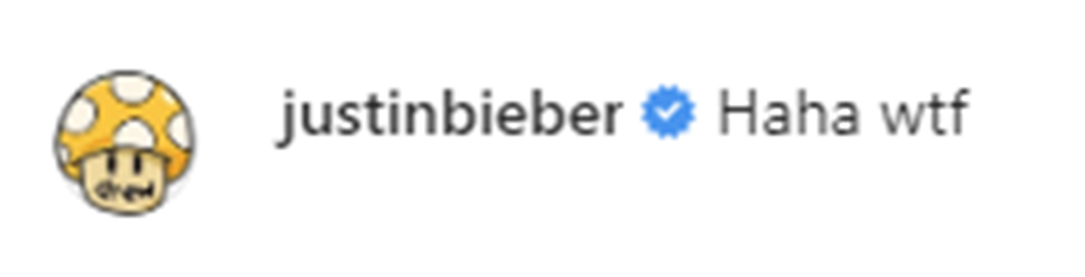 そのBGMとして使用されていた曲が、アリアナの曲ではなく、なぜかジャスティンが2010年にリリースしたヒット曲「イーニー・ミー二―(Eenie Meenie)」だったため、この動画を見たジャスティンもツッコまずにはいられなかったようで、「ハハ、なにこれ」とコメントを残した。
